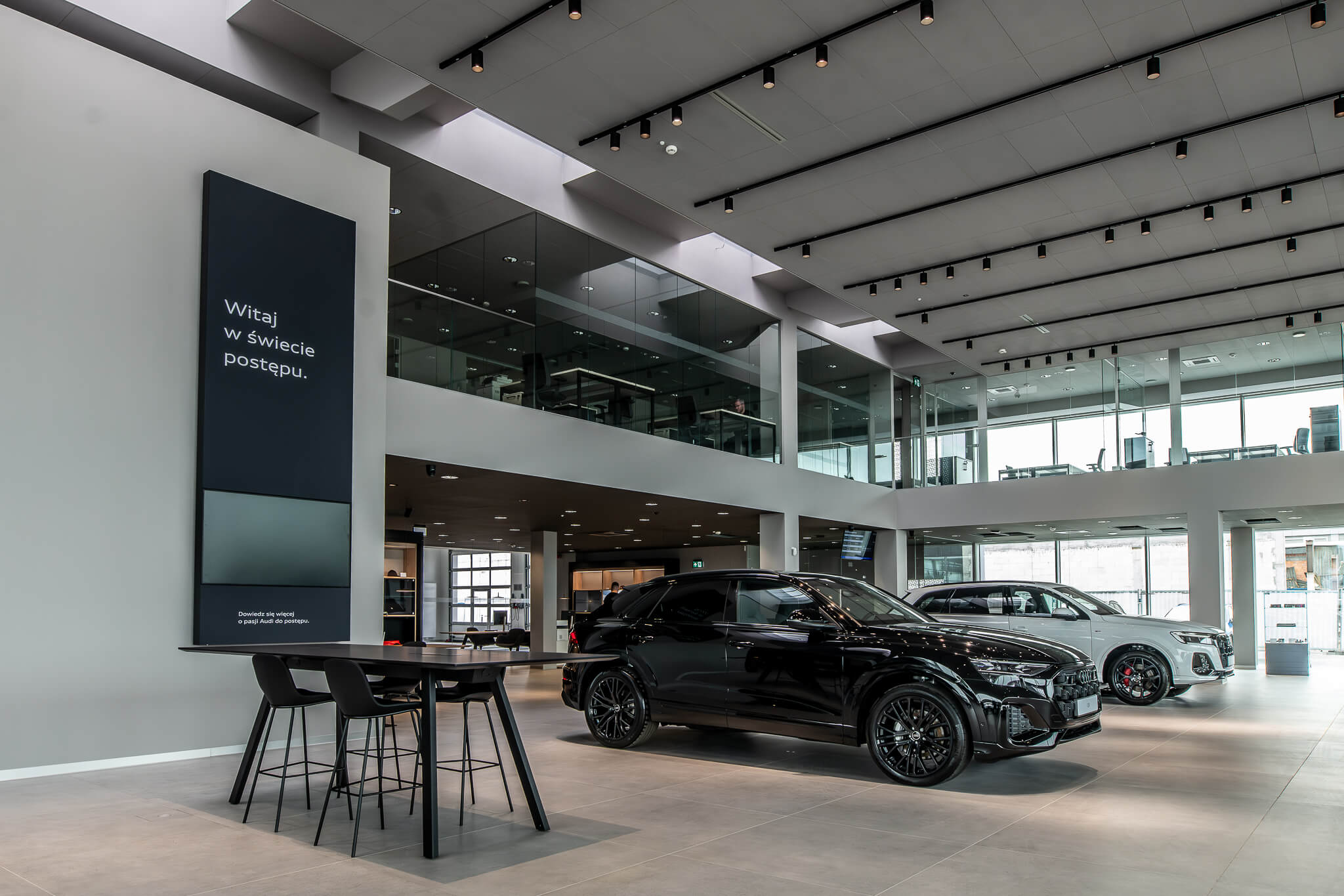 Nowy salon Audi Bydgoszcz jest odzwierciedleniem wizji marki: zrównoważonej i cyfrowej mobilności premium. Inteligentne systemy oświetlenia, funkcjonalny układ przestrzeni i zastosowanie nowoczesnych technologii sprawiają, że każdy detal budynku harmonizuje z innowacyjnym charakterem modeli Audi.