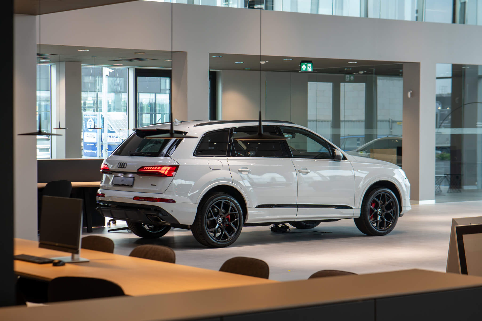 Dwie strefy ekspozycyjne – dla samochodów nowych oraz aut z programu Audi Select :plus, gdzie każdy model prezentowany jest w starannie zaplanowanej, nowoczesnej scenerii.