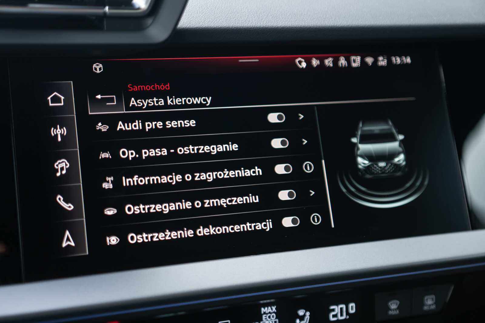 • funkcja ostrzegająca przed opuszczeniem pasa ruchu