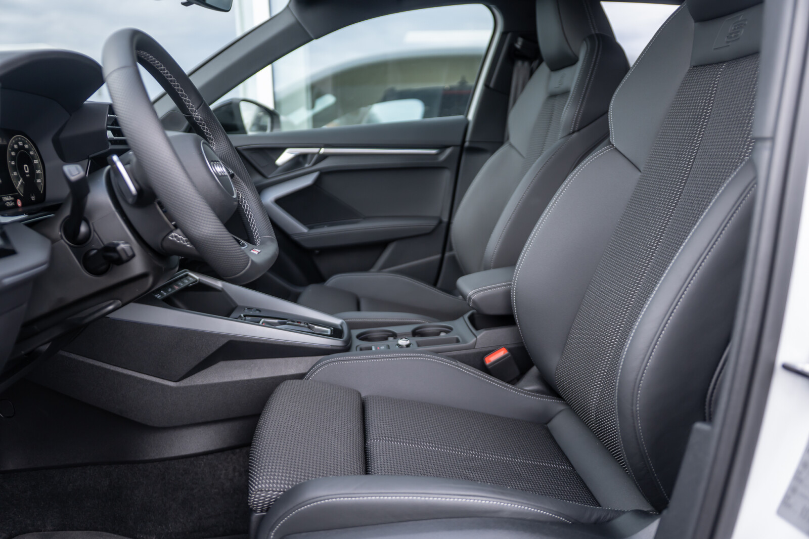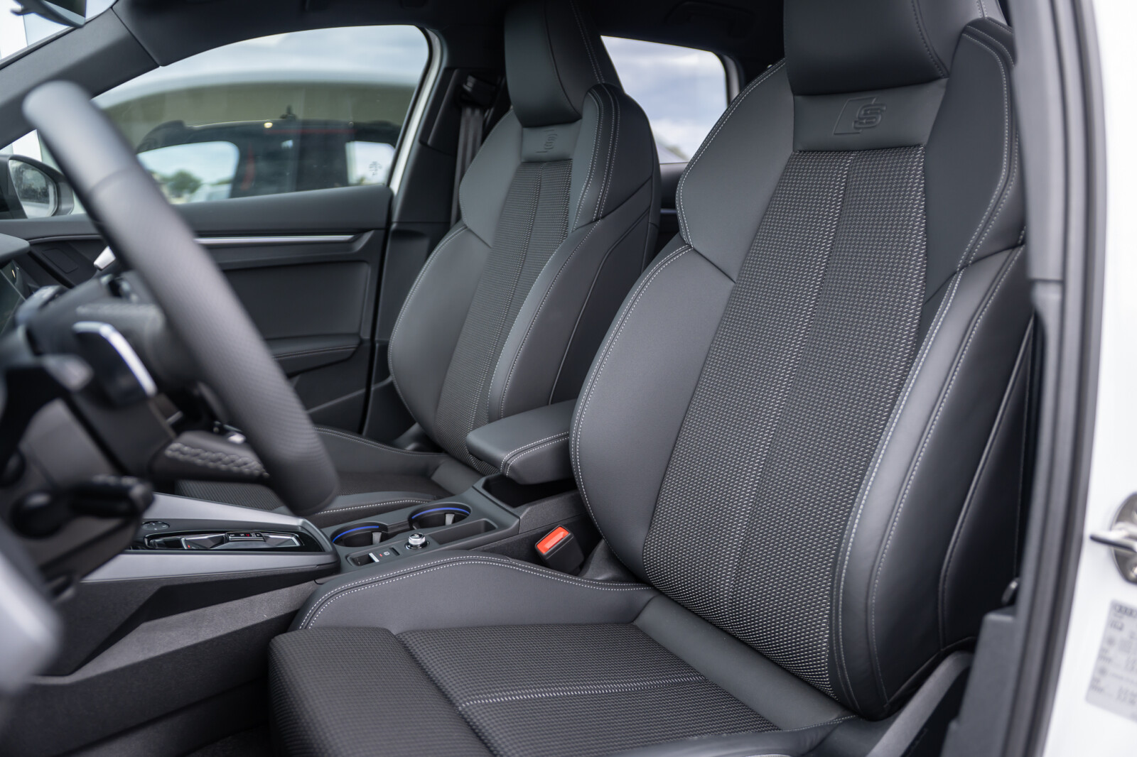 – Pakiet Interieur S z siedzeniami sportowymi obszytymi kombinacją tkanina/skóra ekologiczna w kolorze czarnym Interieur S