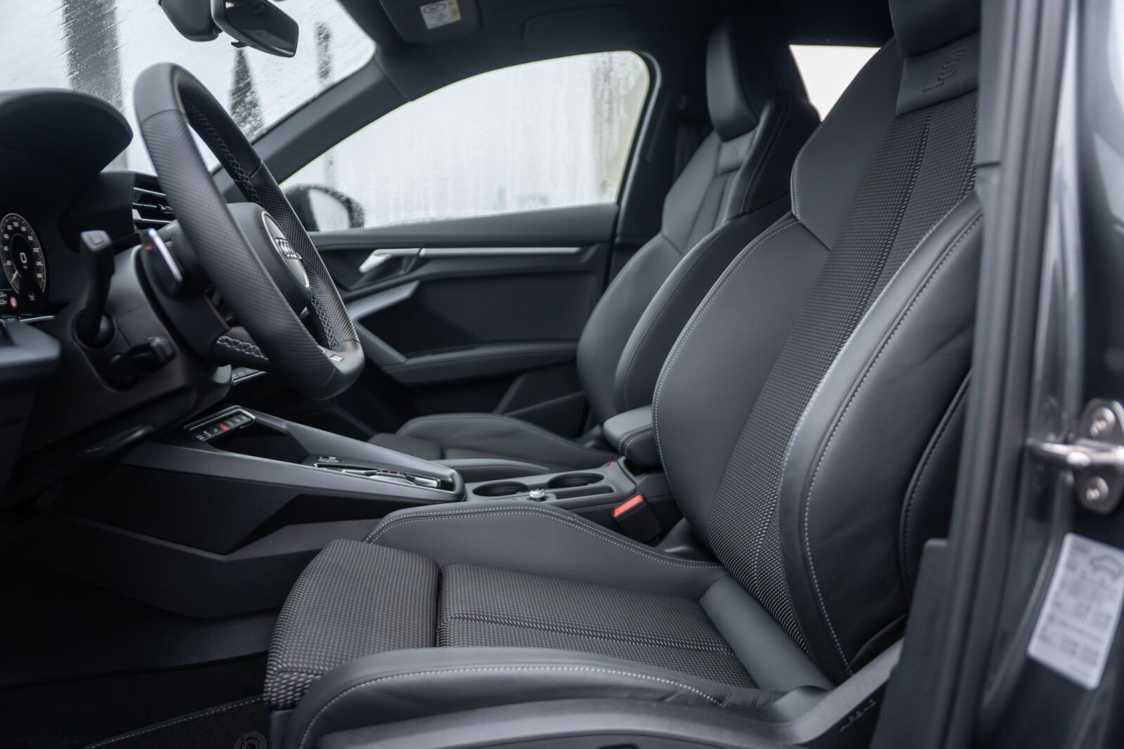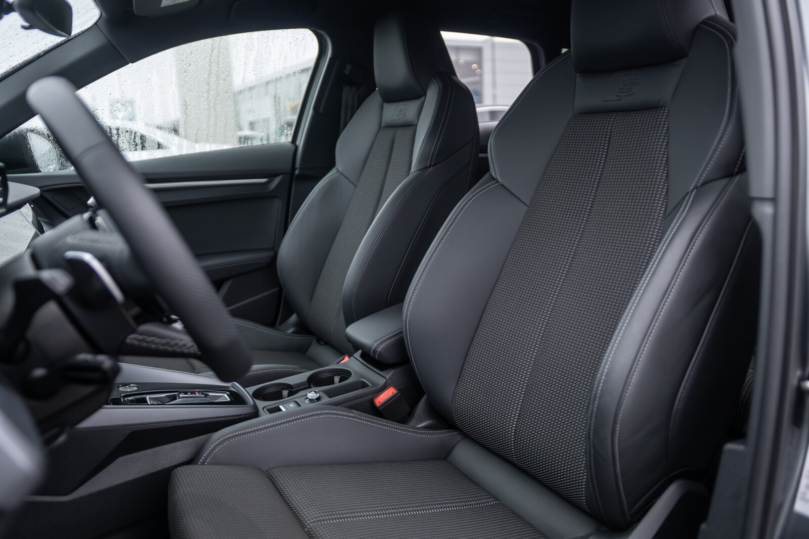– Pakiet Interieur S z siedzeniami sportowymi obszytymi kombinacją tkanina/skóra ekologiczna w kolorze czarnym Interieur S