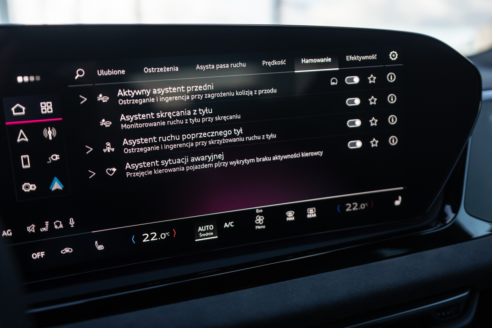 – System ostrzegający przy zmianie pasa ruchu i wysiadaniu, asystent ruchu poprzecznego z tyłu i tylny asystent skrętu