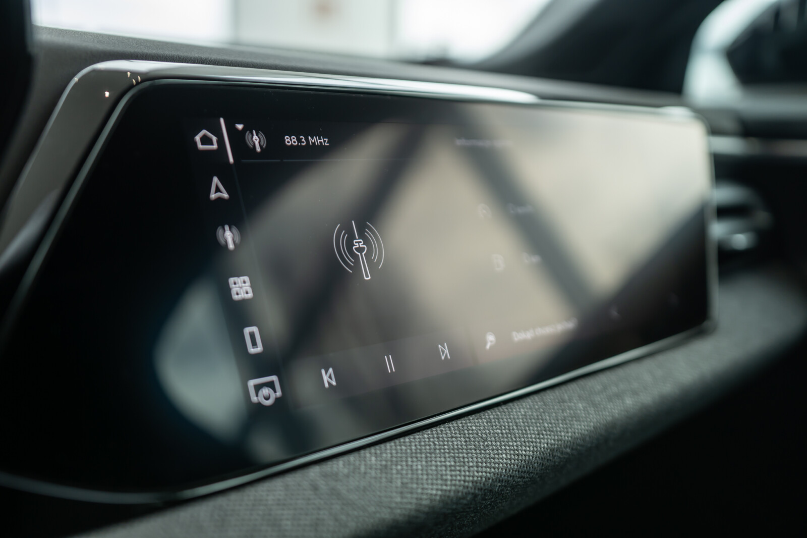 • Kierownica sportowa, 3-ramienna, spłaszczona u dołu i na górze, wielofunkcyjna, z przełącznikami kołyskowymi, obszyta skórą