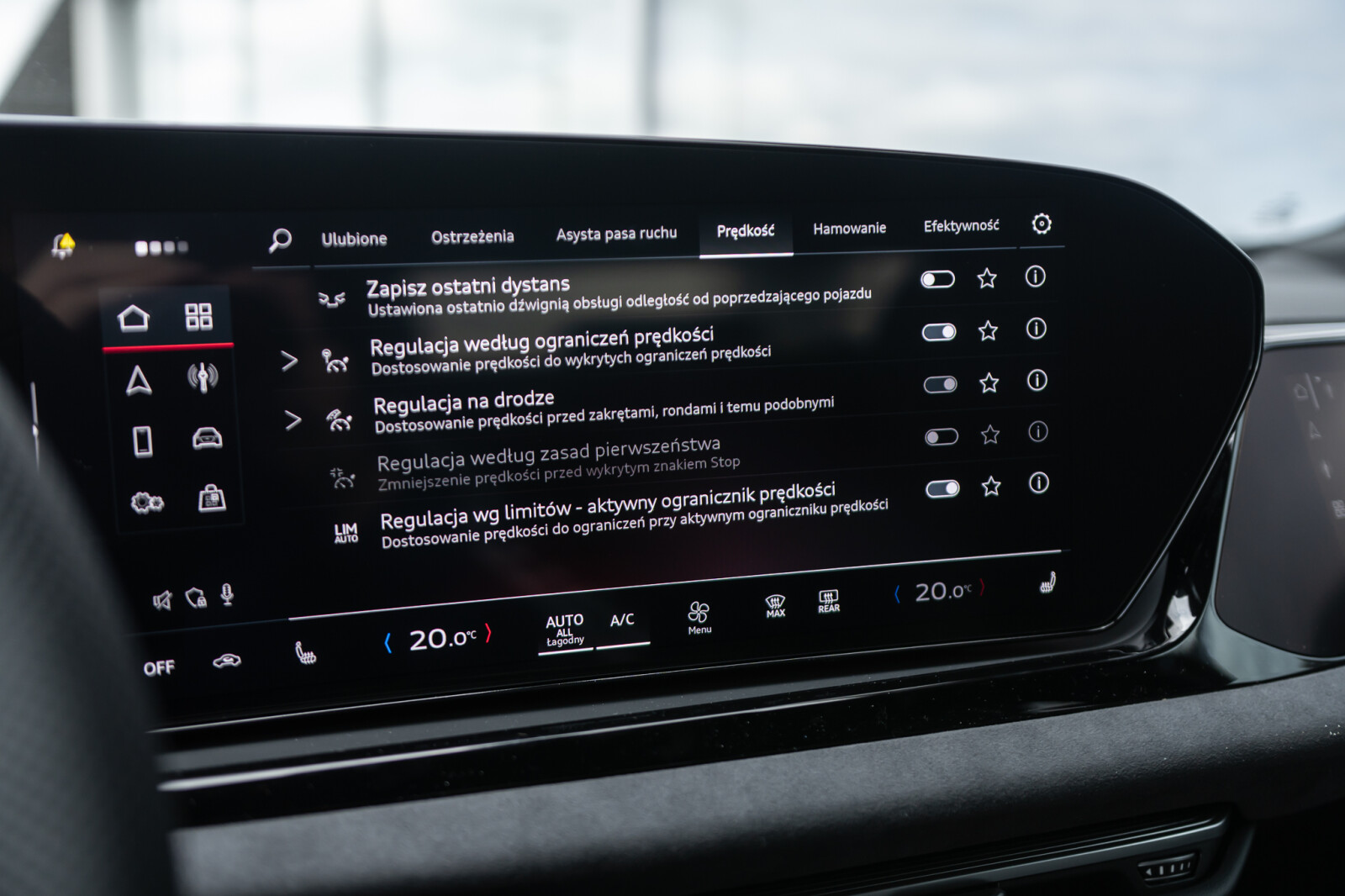 – Obręcze kół ze stopu metali lekkich Audi Sport 8,5Jx20″, 5 – ramienne Peak, czarne metalik, polerowane, z oponami 255/40 R 20. 3-letnie ubezpieczenie opon w cenie.