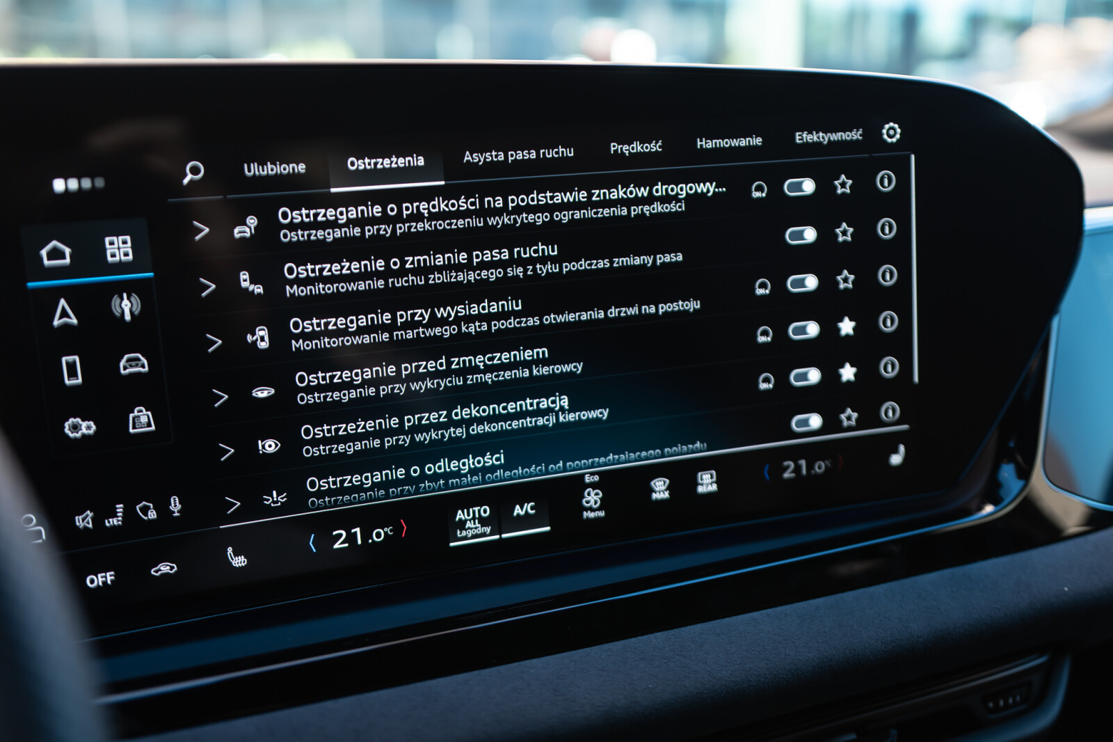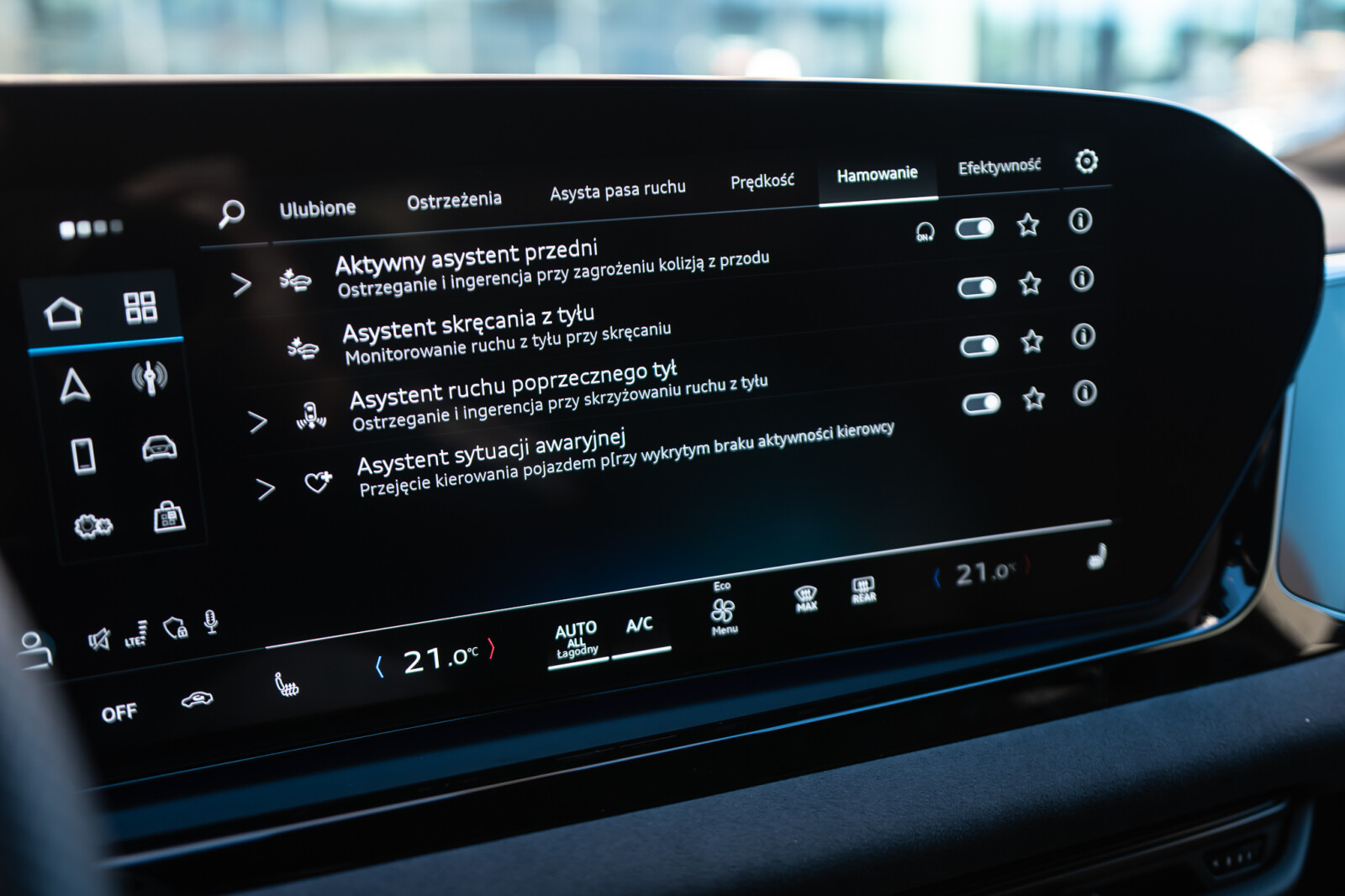 • funkcja ostrzegania przy zmianie pasa ruchu i przy wysiadaniu, tylny asystent ruchu poprzecznego i tylny asystent skrętu