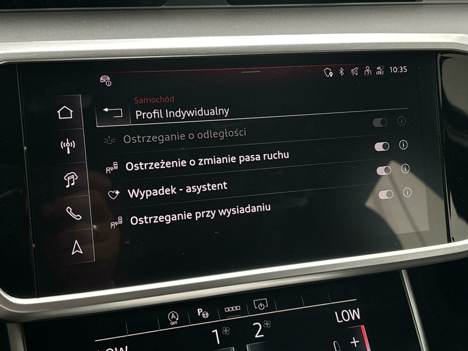 System ostrzegający przy zmianie pasa ruchu z Audi pre sense rear, funkcją ostrzegania przy wysiadaniu i asystentem ruch