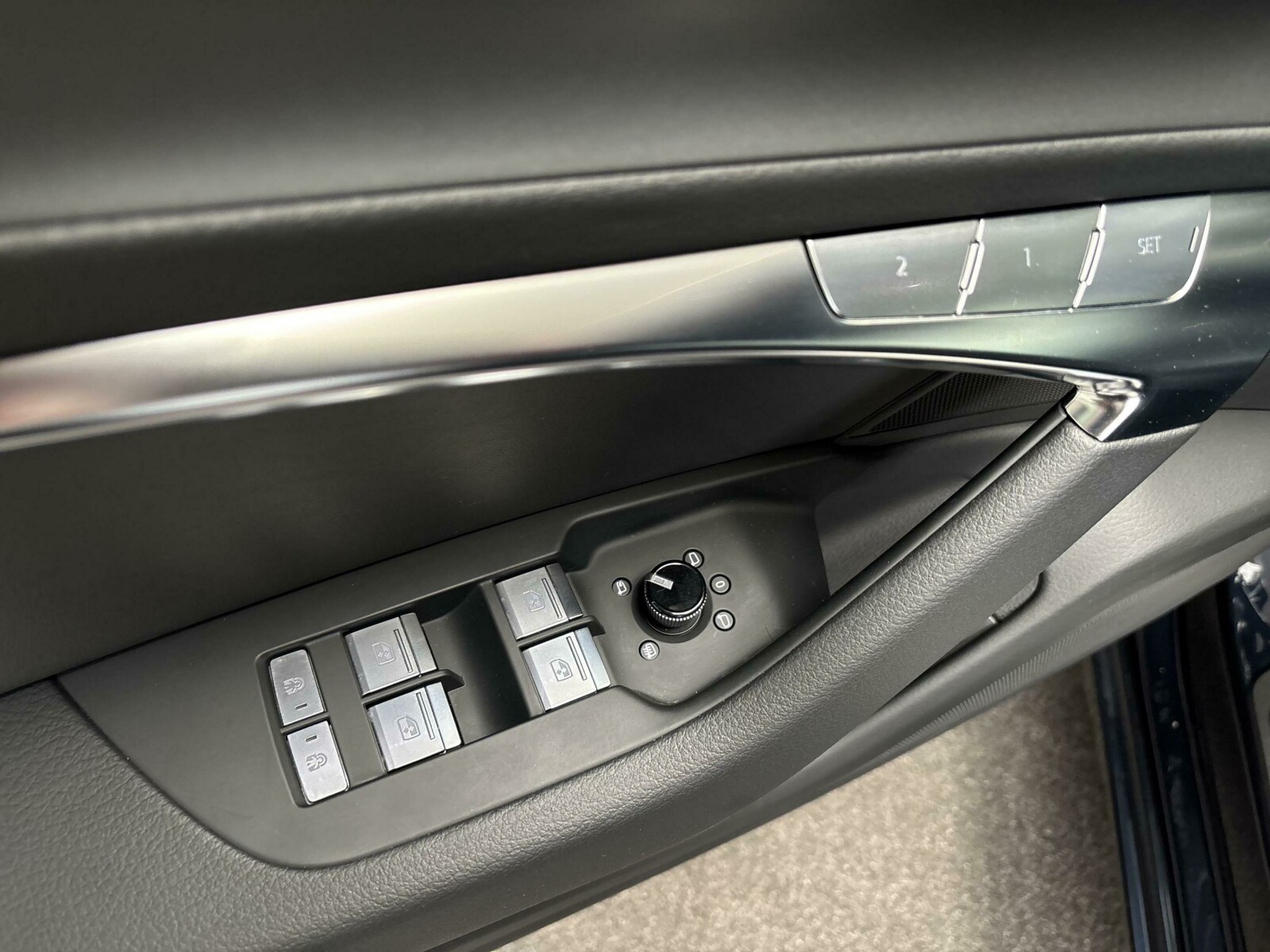 Przyciski obsługowe czarne z połyskiem, z haptycznym feedbackiem i elementami w optyce aluminium