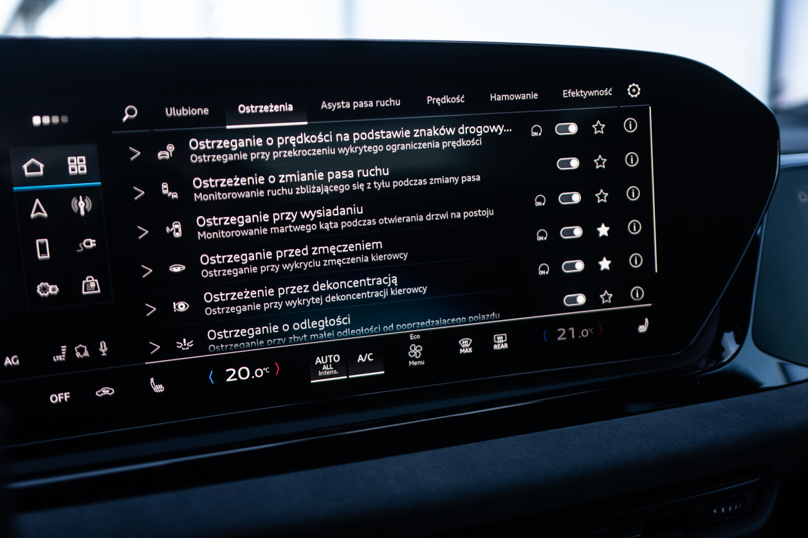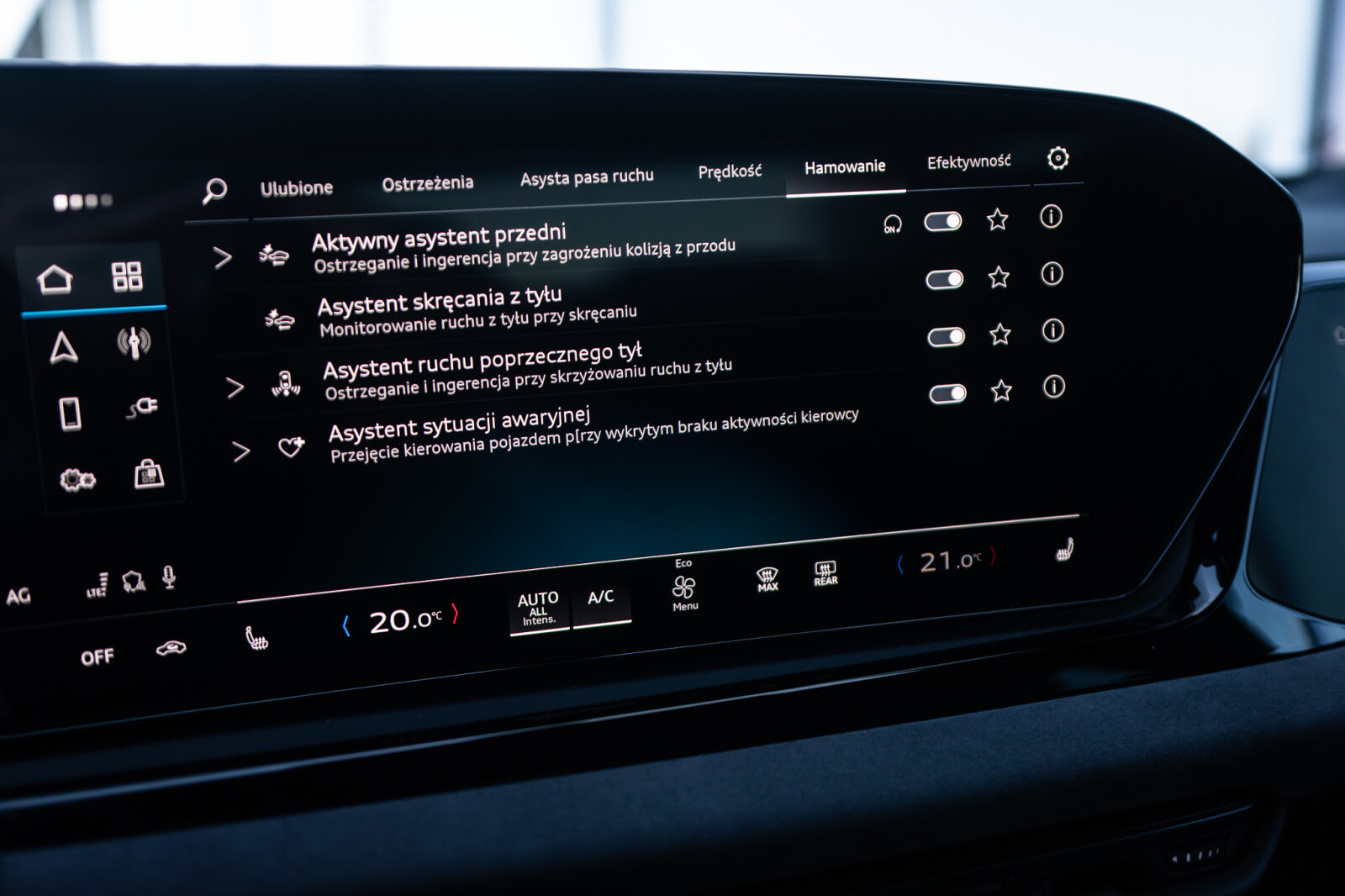• funkcja ostrzegania przy zmianie pasa ruchu i przy wysiadaniu, tylny asystent ruchu poprzecznego i tylny asystent skrętu