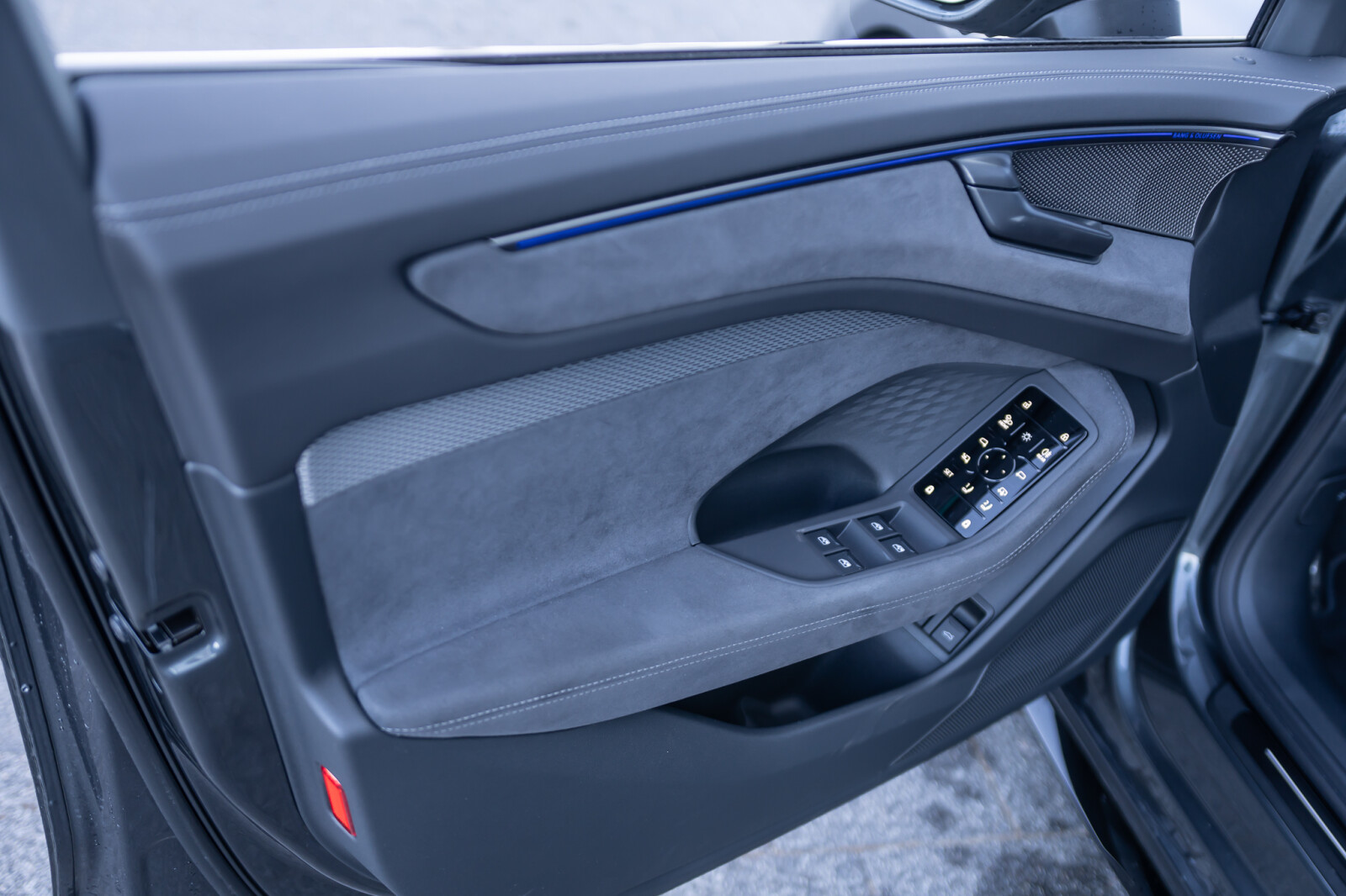 • listwy progowe w przednich drzwiach z aluminiowymi wstawkami, podświetlane, z emblematem S