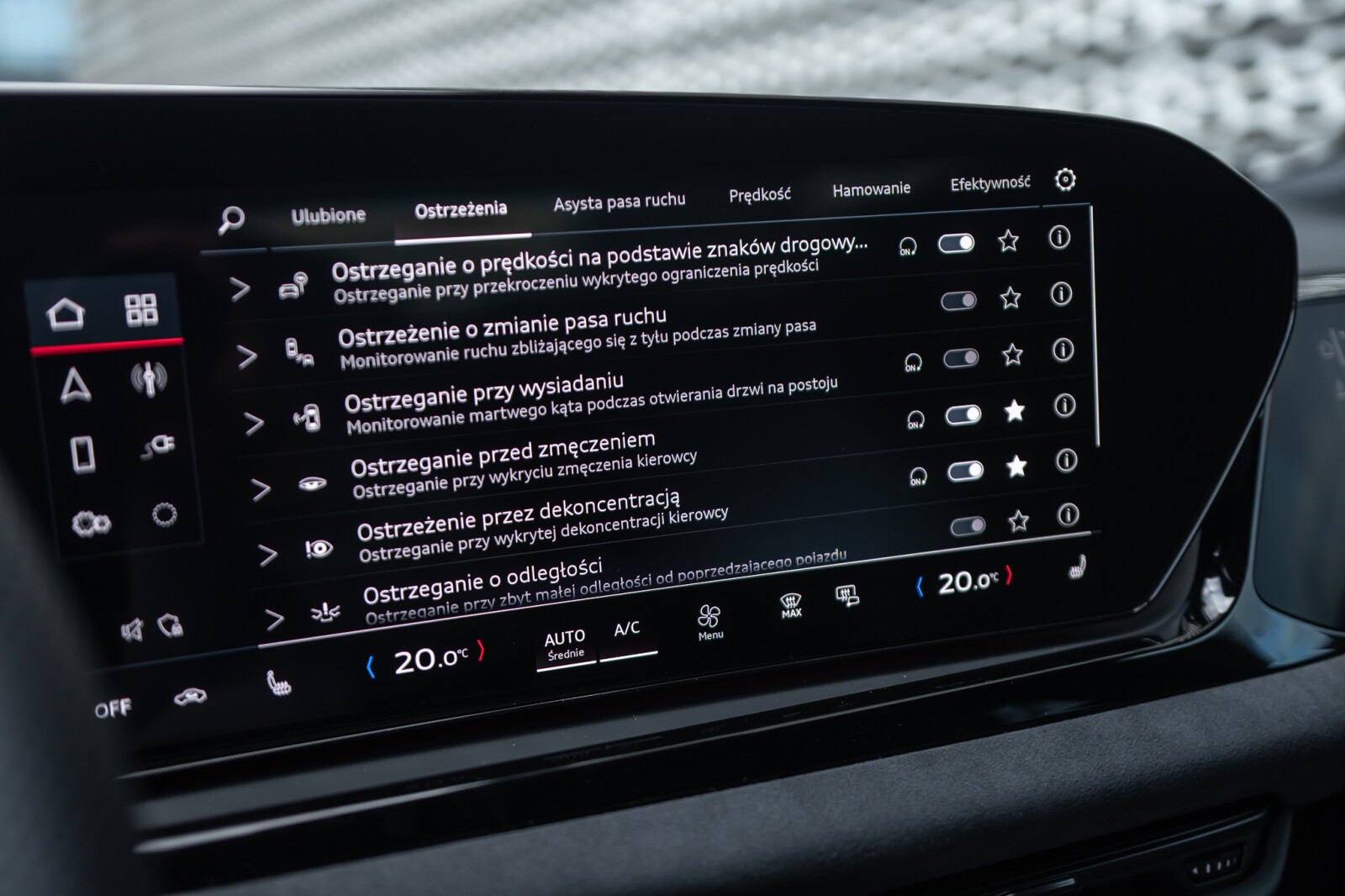 • funkcja ostrzegania przy zmianie pasa ruchu i wysiadaniu, tylny asystent ruchu poprzecznego i tylny asystent skrętu