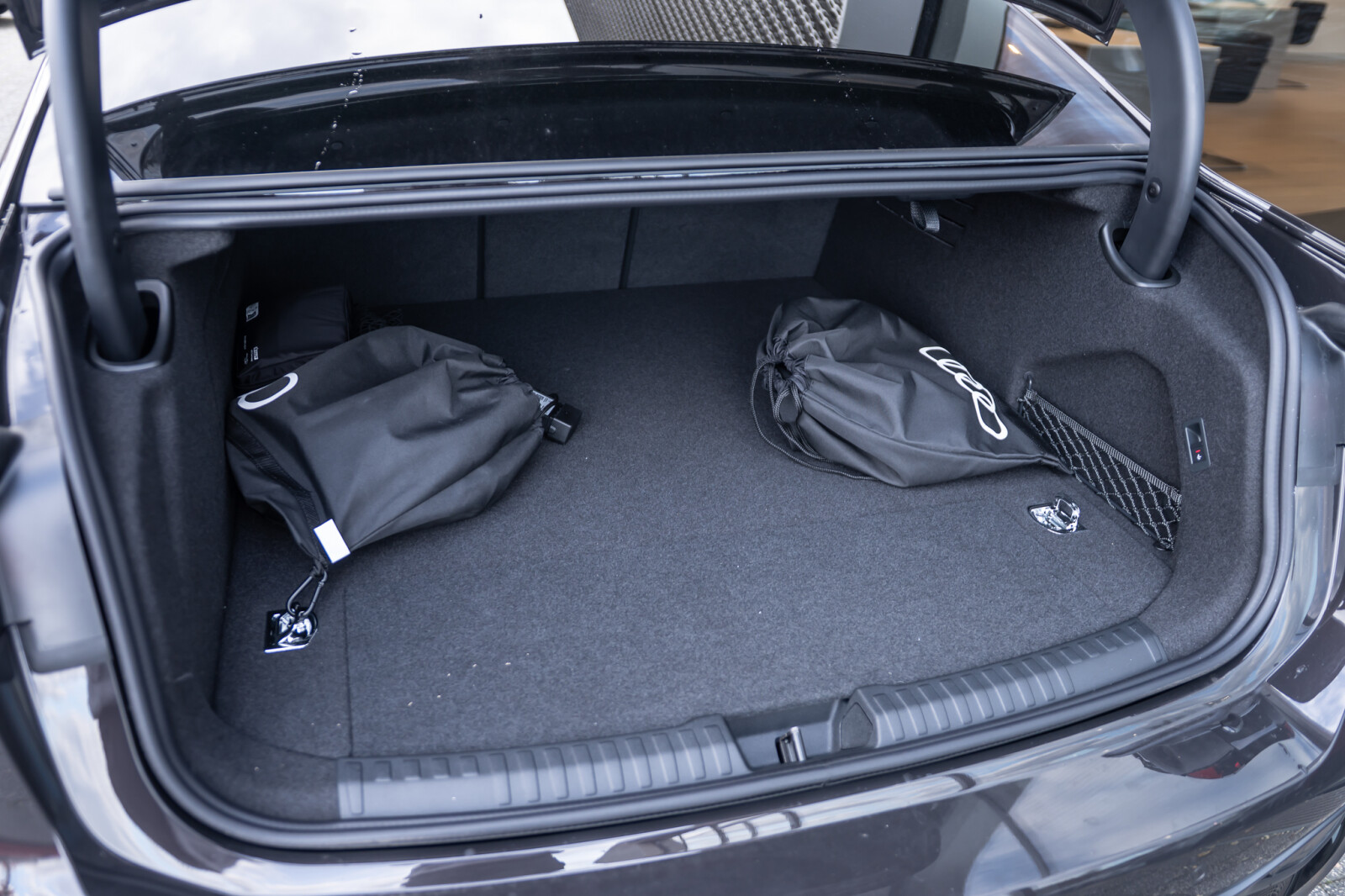 • ciemne listwy wokół okien i elementy montowane do nadwozia, pierścienie Audi z przodu i z tyłu w kolorze antracytowoszarym