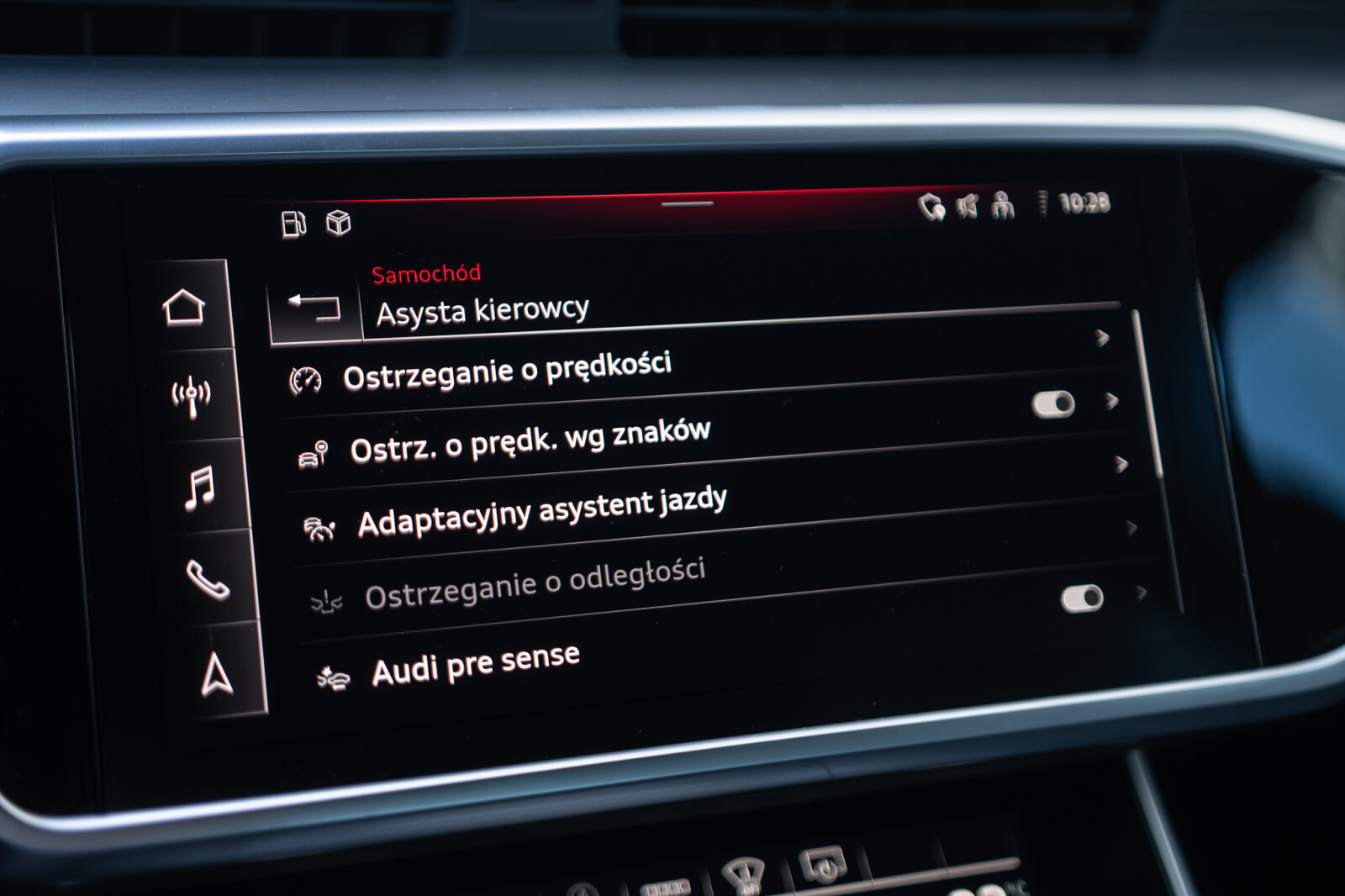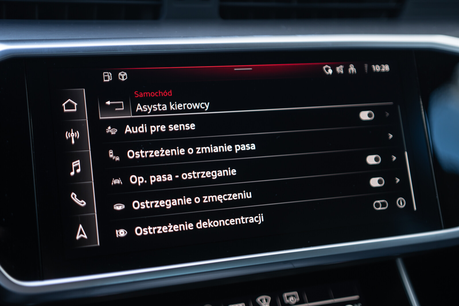 – System ostrzegający przy zmianie pasa ruchu z Audi pre sense rear, funkcją ostrzegania przy wysiadaniu i asystentem ruchu       poprzecznego z tyłu