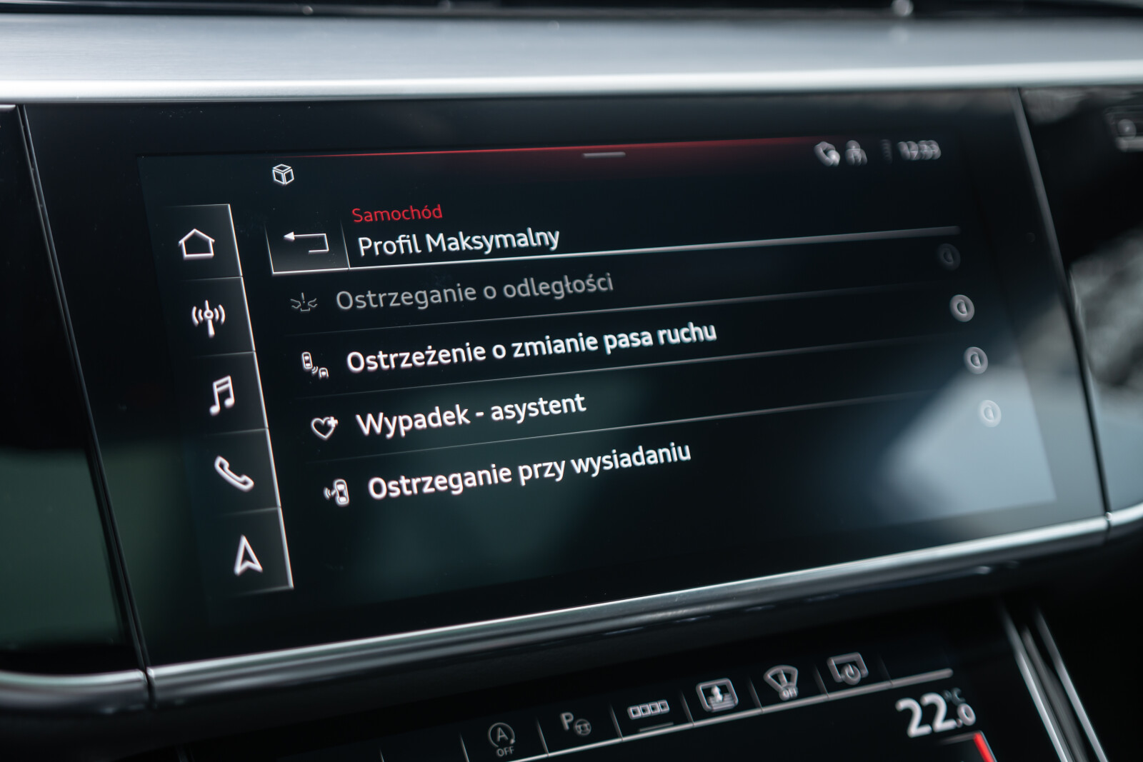 • Audi side assist – asystent zmiany pasa ruchu z Audi pre sense rear, ostrzeżeniem przy wysiadaniu i asystentem ruchu poprzecznego z tyłu