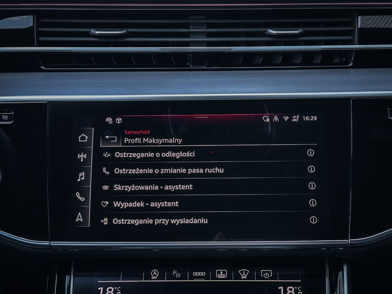 • Audi side assist – asystent zmiany pasa ruchu z Audi pre sense rear, ostrzeżeniem przy wysiadaniu i
