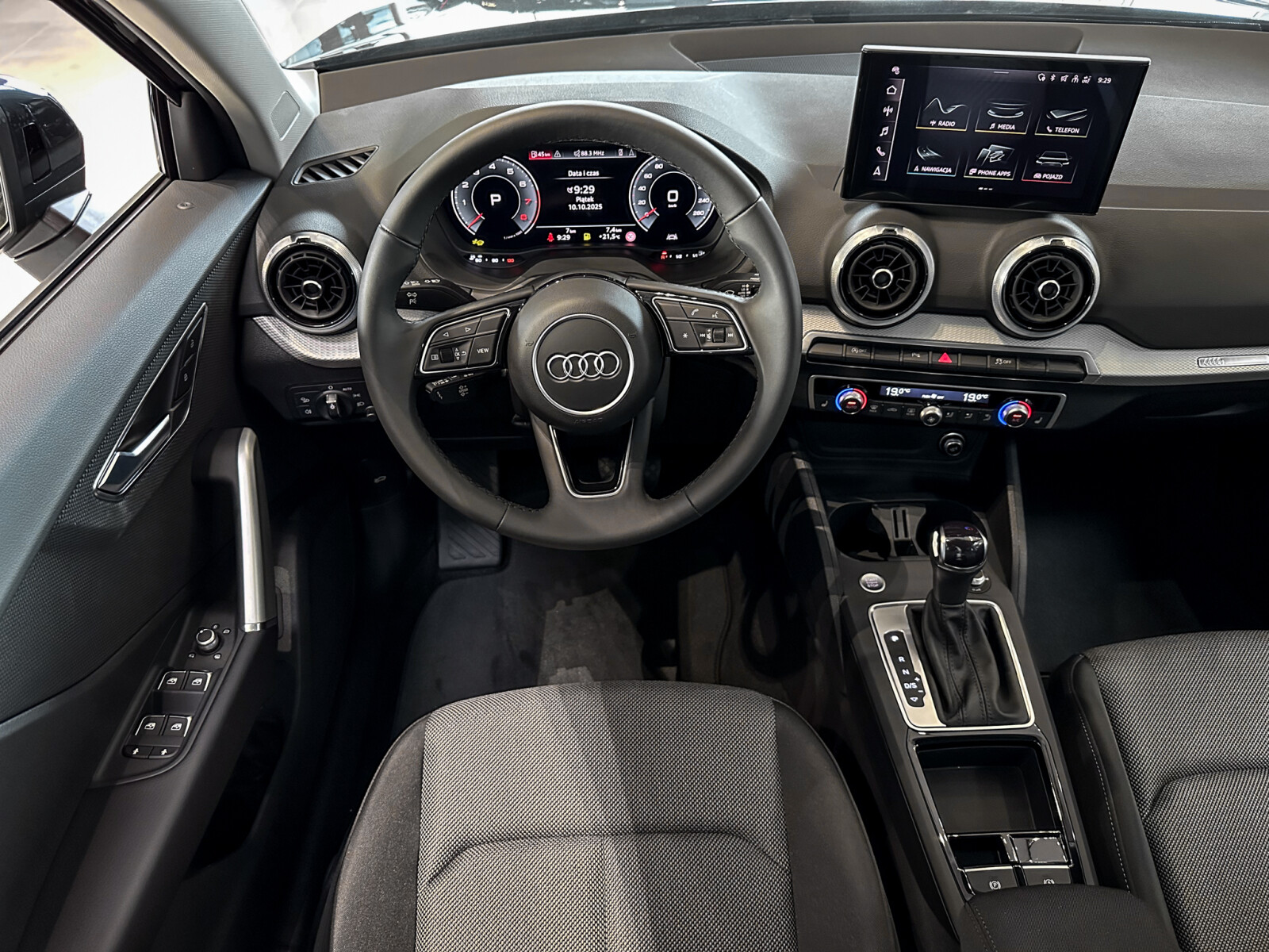 – Wnętrze z siedzeniami sportowymi obszytymi tkaniną w kolorze czarnym
