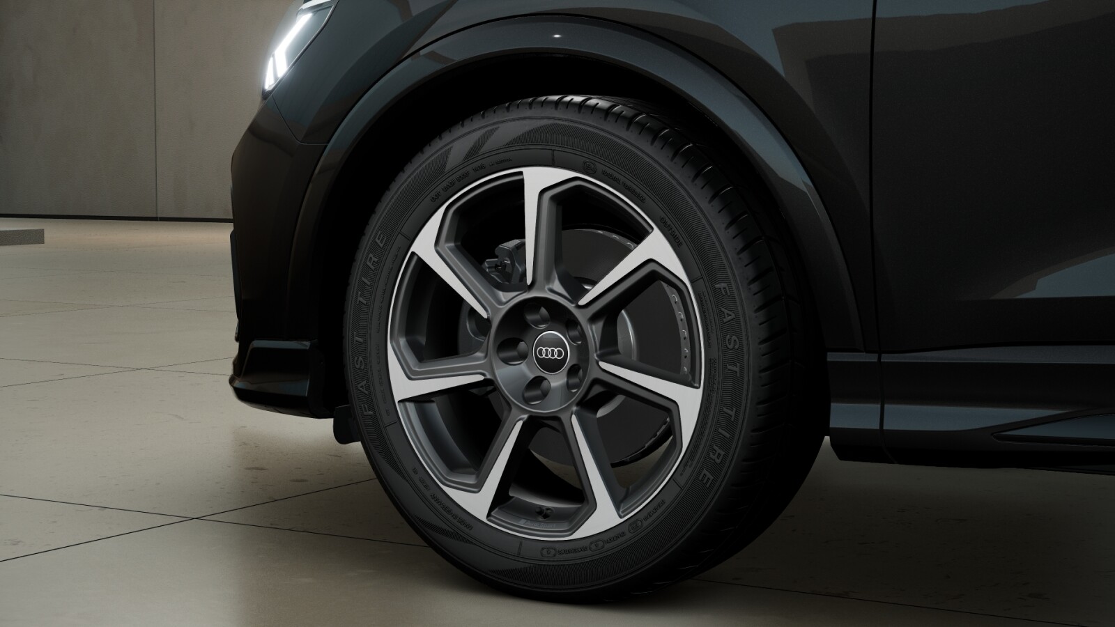 – Obręcze kół ze stopu metali lekkich Audi Sport 8,5Jx19″, kute, 7 – ramienne Rotor, antracytowo-czarne, z