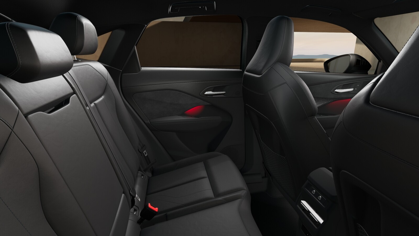 • środkowe części przednich siedzeń obszyte czarną skórą, boki siedzeń i zagłówki obszyte czarną skórą ekologiczną; kontrastowy szew