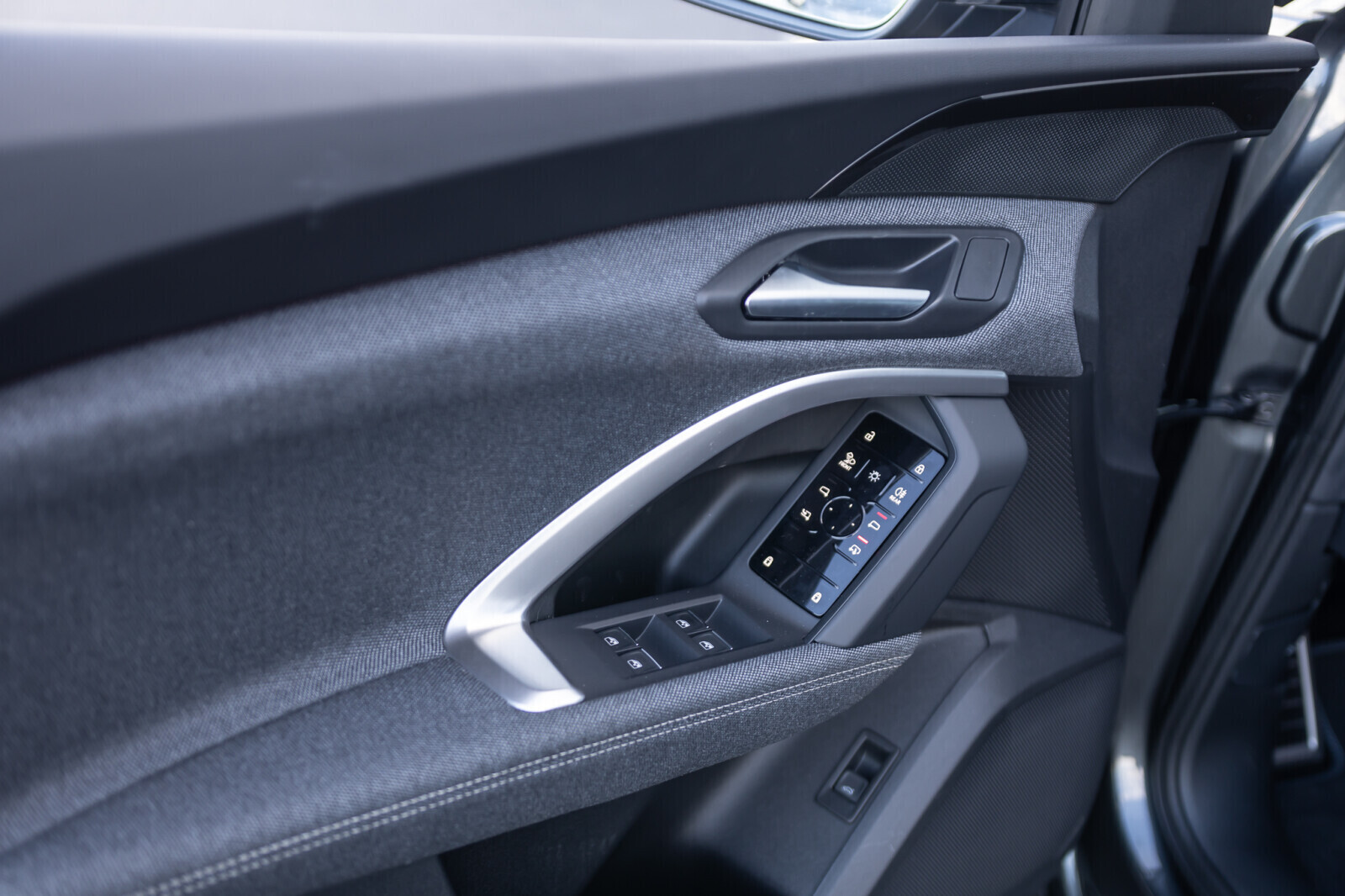 • górne elementy wnętrza pokryte tkaniną Kaskade¹, dolne elementy pokryte skórą ekologiczną: elementy dekoracyjne na tablicy rozdzielczej oraz w drzwiach i podłokietnikach z tkaniny Kaskade¹, kontrastowy szew na podłokietnikach w drzwiach, elementy na wysokości kolan na konsoli środkowej pokryte czarną skórą ekologiczną z kontrastowym szwem