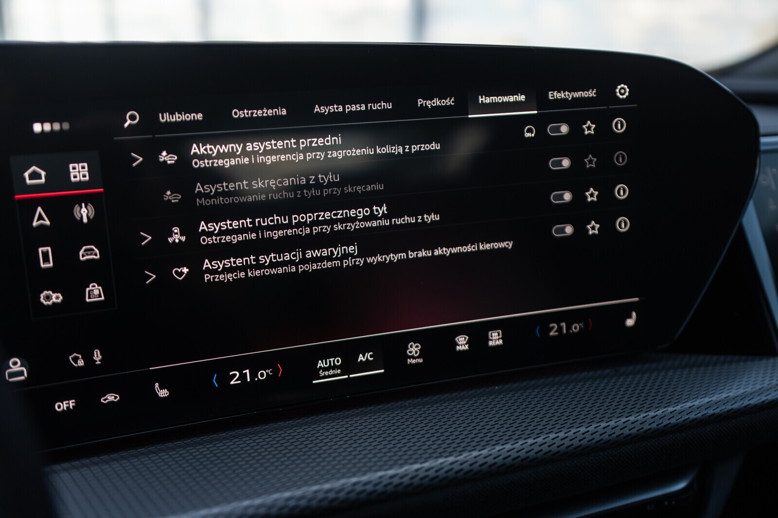 • system ostrzegający przy zmianie pasa ruchu i wysiadaniu, asystent ruchu poprzecznego z tyłu i tylny asystent skrętu