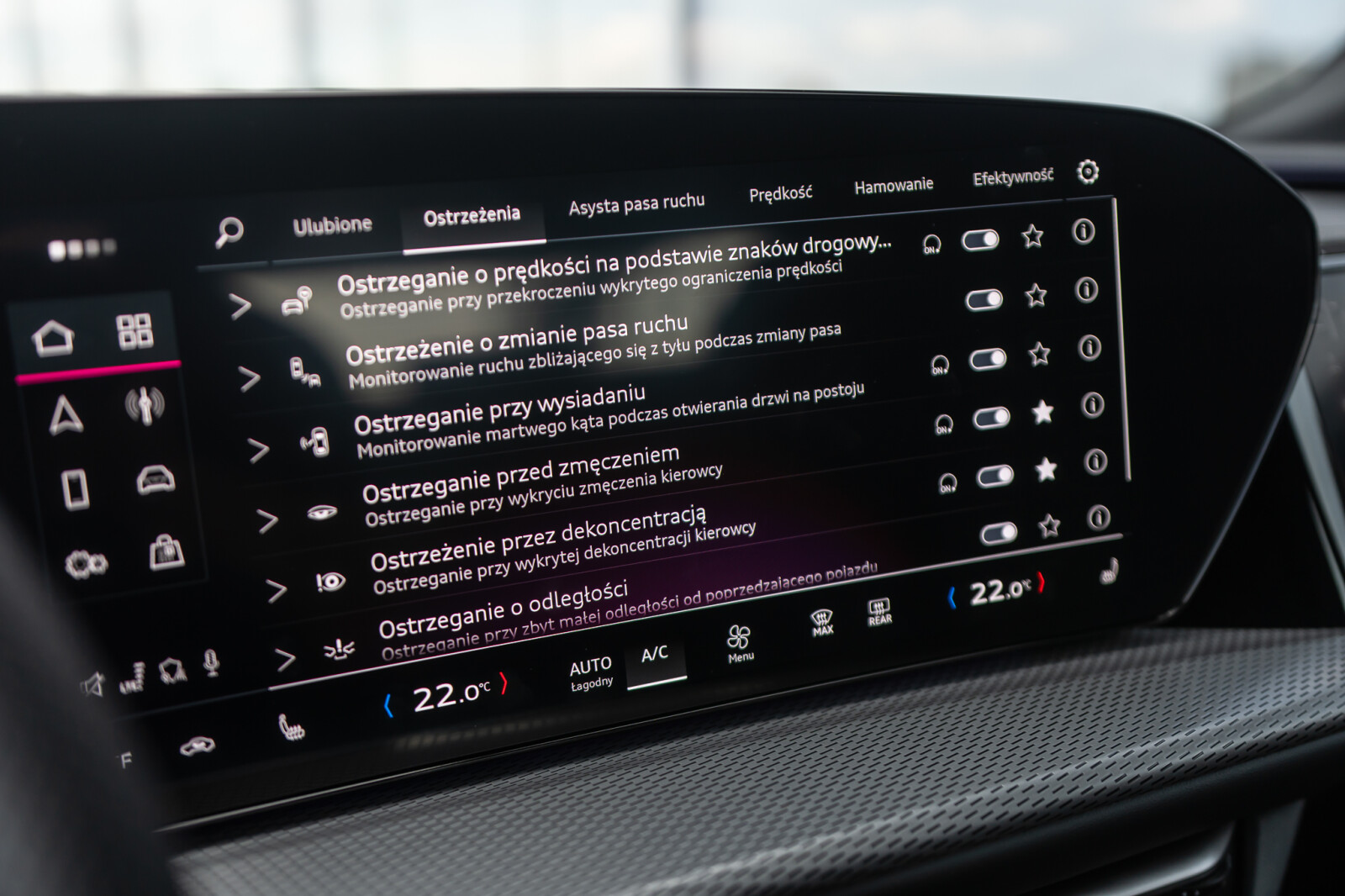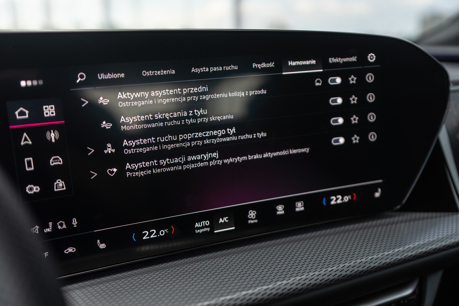 system ostrzegający przy zmianie pasa ruchu i wysiadaniu, asystent ruchu poprzecznego z tyłu i tylny asystent skrętu