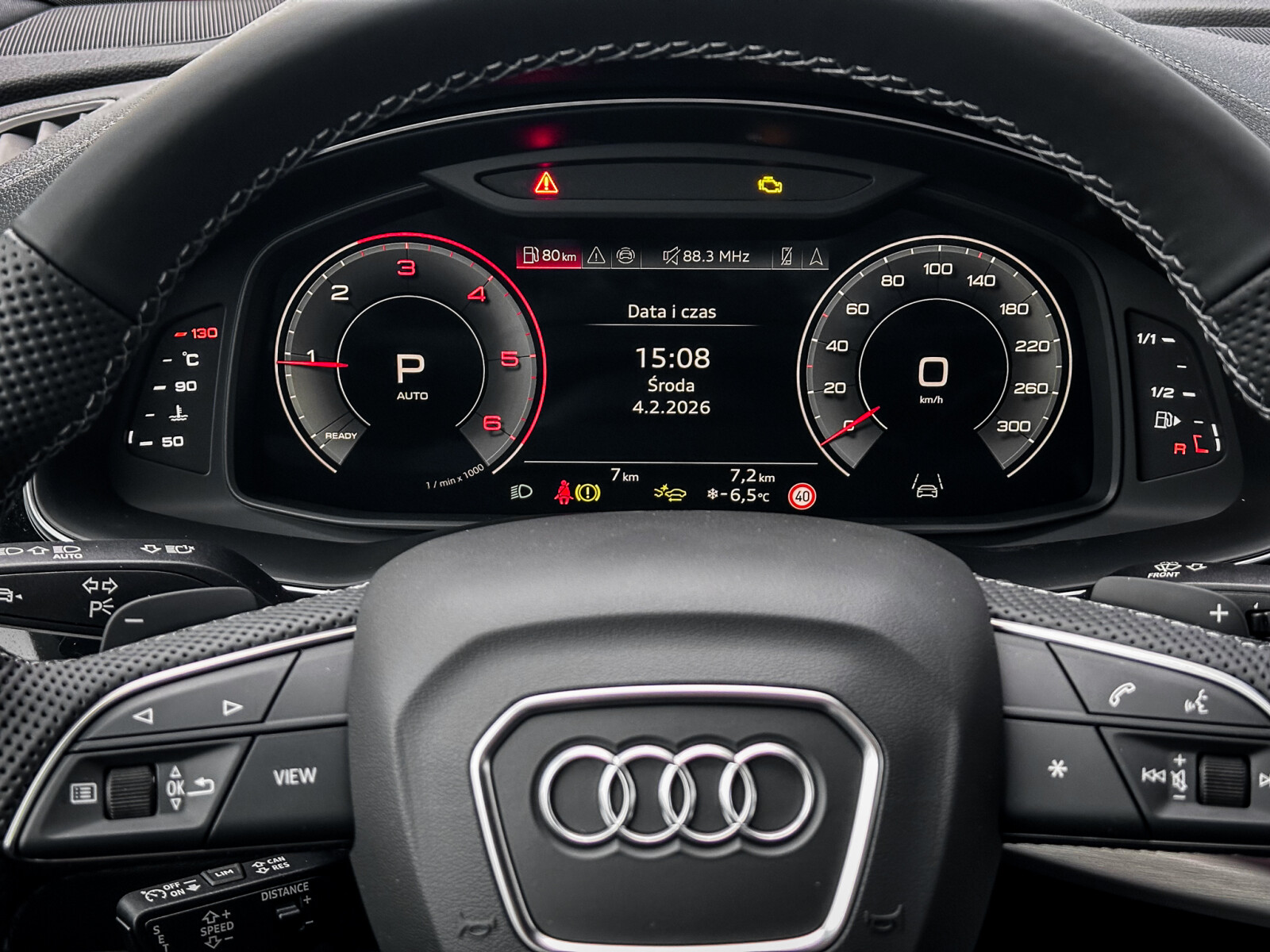 – Kierownica wielofunkcyjna, 3-ramienna, z przełącznikami zmiany przełożenia, obszyta skórą i