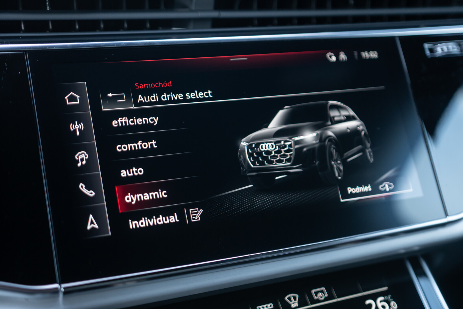 – Przyciski obsługowe czarne z połyskiem, z haptycznym feedbackiem i elementami w optyce aluminium