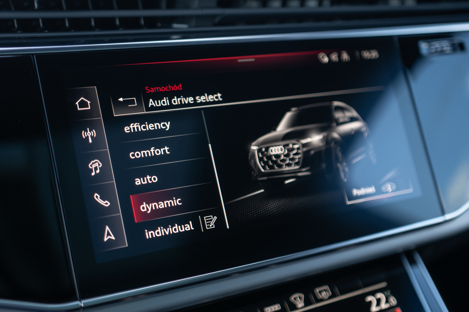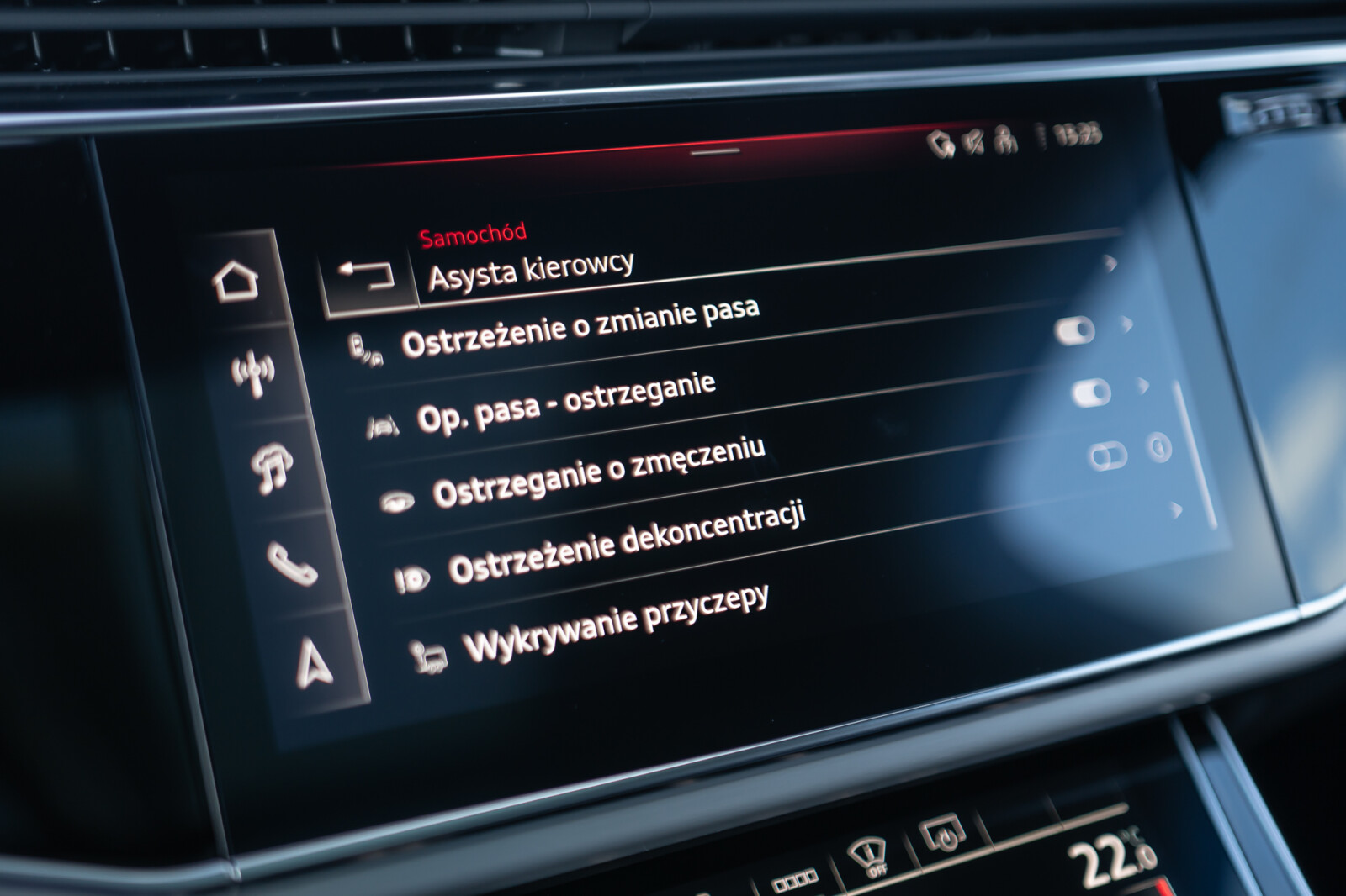 – Przyciski obsługowe czarne z połyskiem, z haptycznym feedbackiem i elementami w optyce aluminium