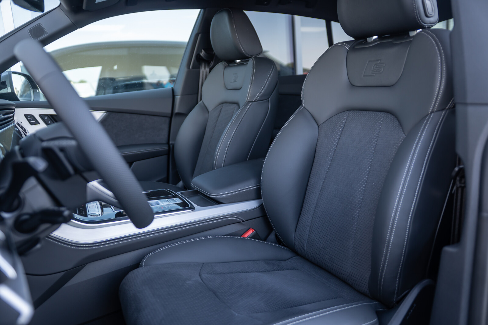 • tapicerka z kombinacji mikrofibry Dinamica Frequenz/skóry z wytłoczonym logo S na oparciach przednich siedzeń