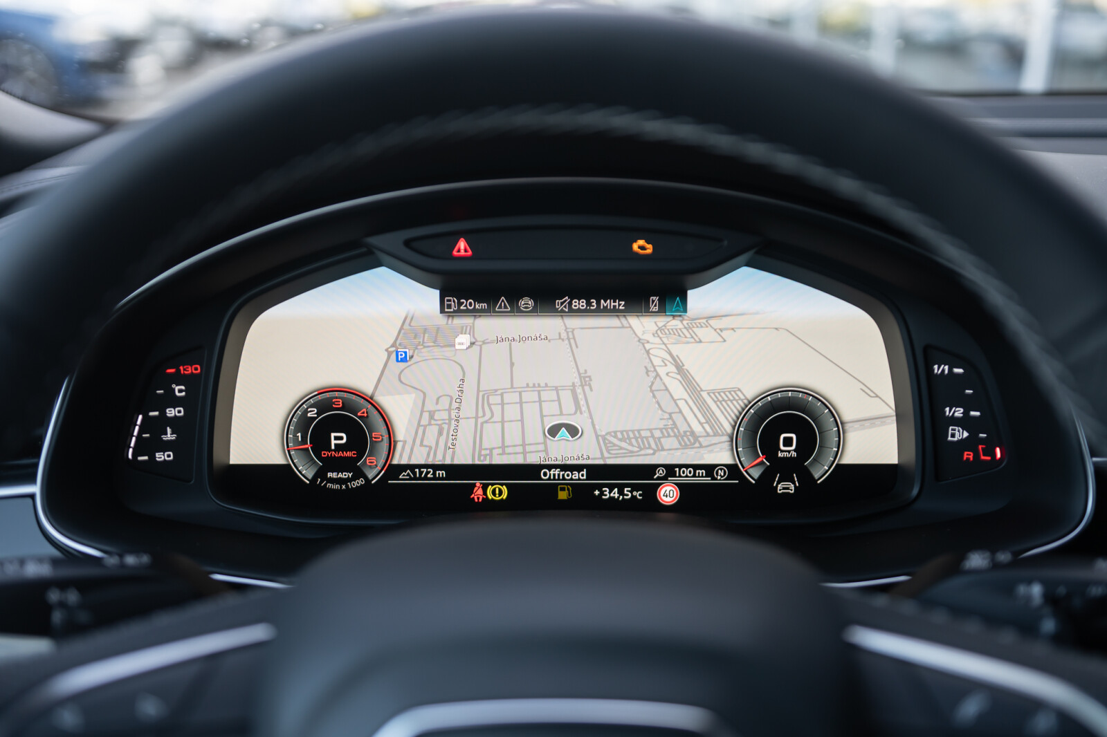 • 3-ramienna kierownica wielofunkcyjna z przyciskami zmiany przełożenia, obszyta czarną skórą, boczne segmenty ze skóry perforowanej, emblemat S line oraz chromowane aplikacje