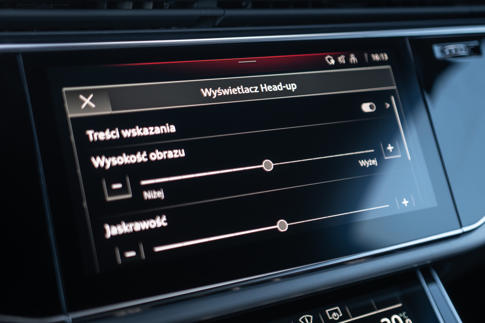 – Przyciski obsługowe czarne z połyskiem, z haptycznym feedbackiem i elementami w optyce aluminium