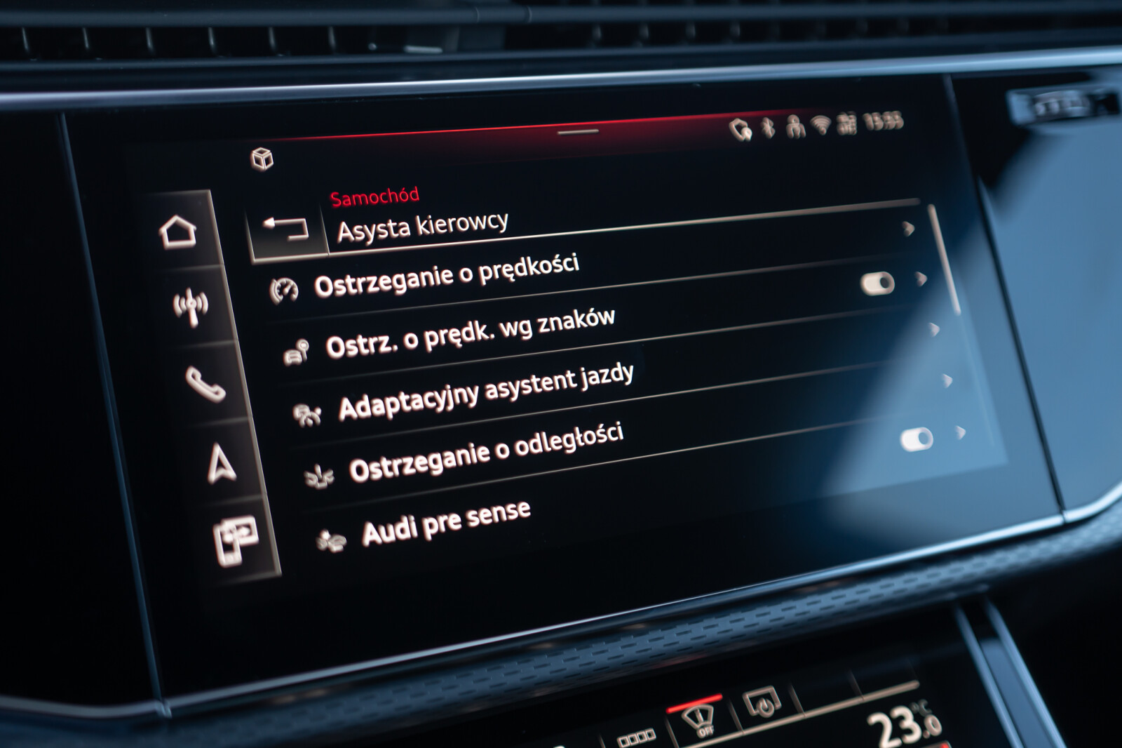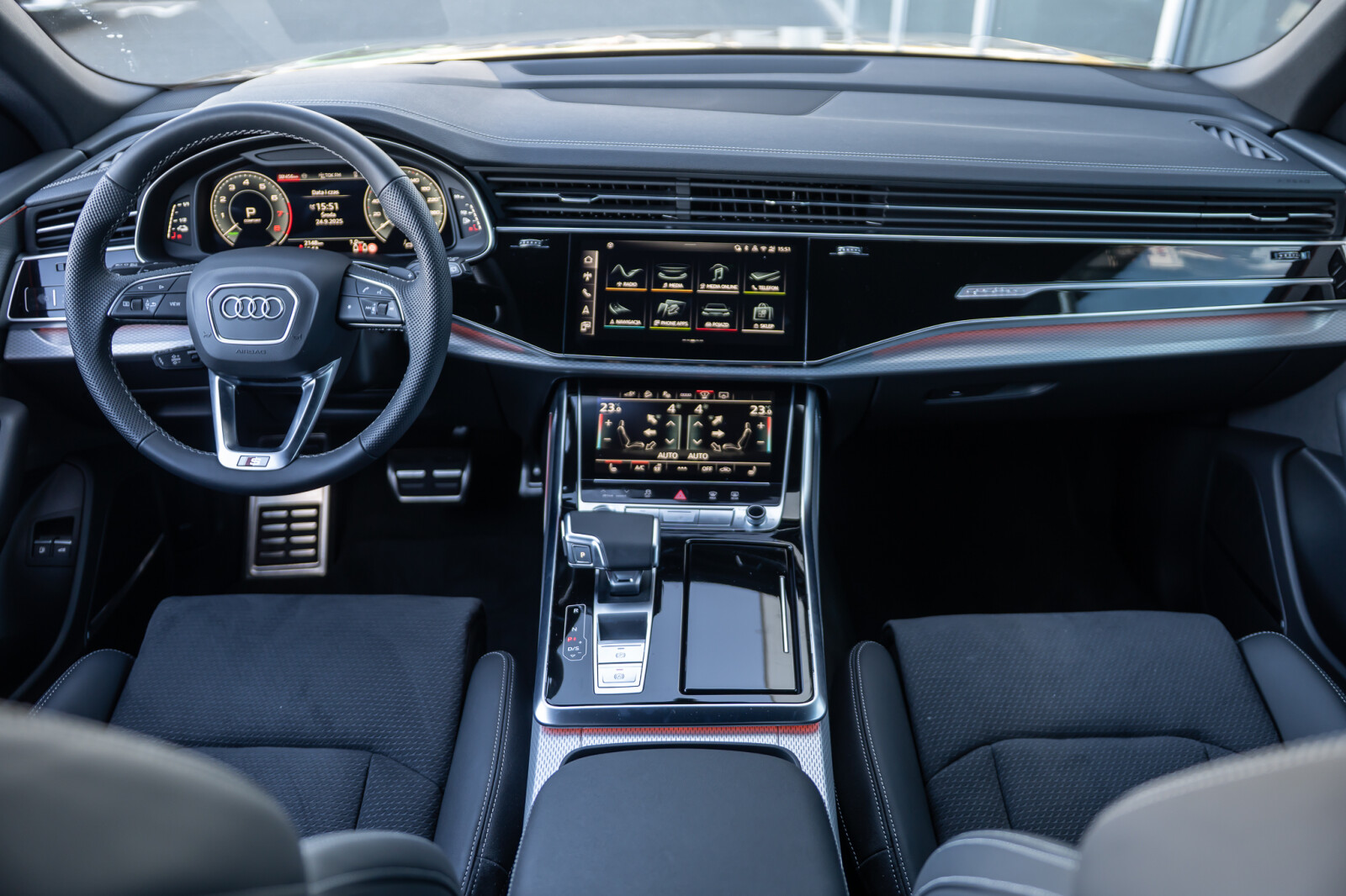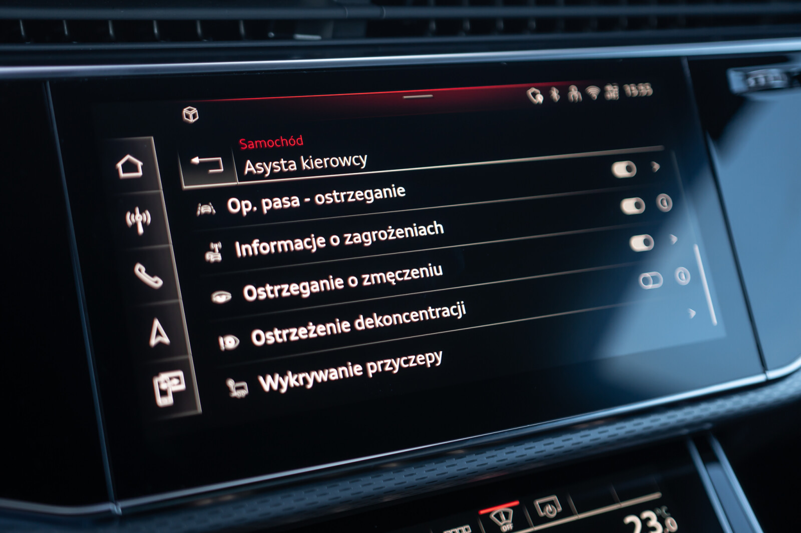 – Przyciski obsługowe czarne z połyskiem, z haptycznym feedbackiem i elementami w optyce aluminium