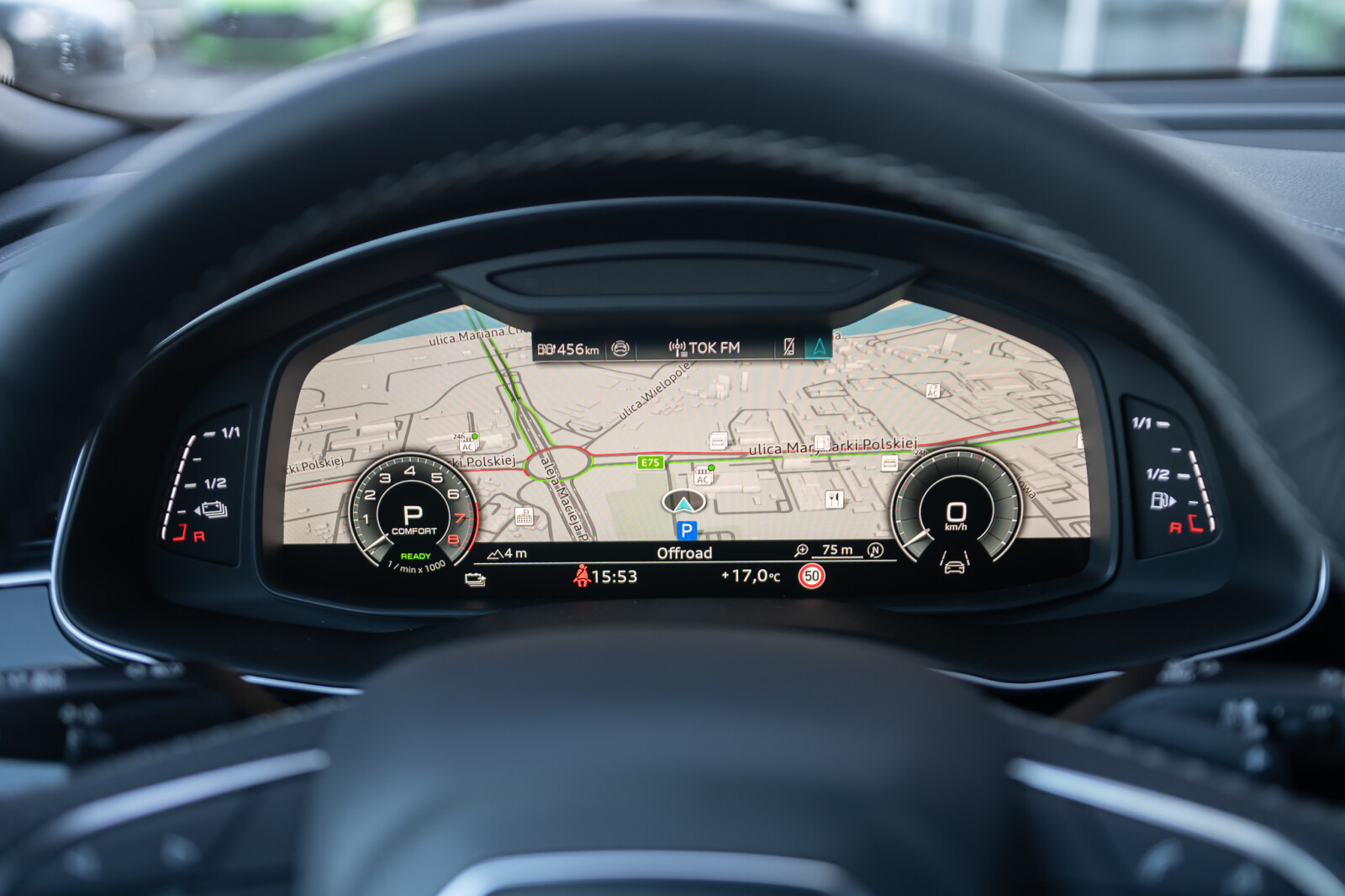 – Kierownica wielofunkcyjna, 3-ramienna, z przełącznikami zmiany przełożenia, obszyta skórą i ogrzewana