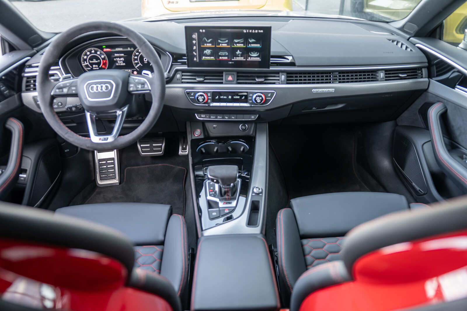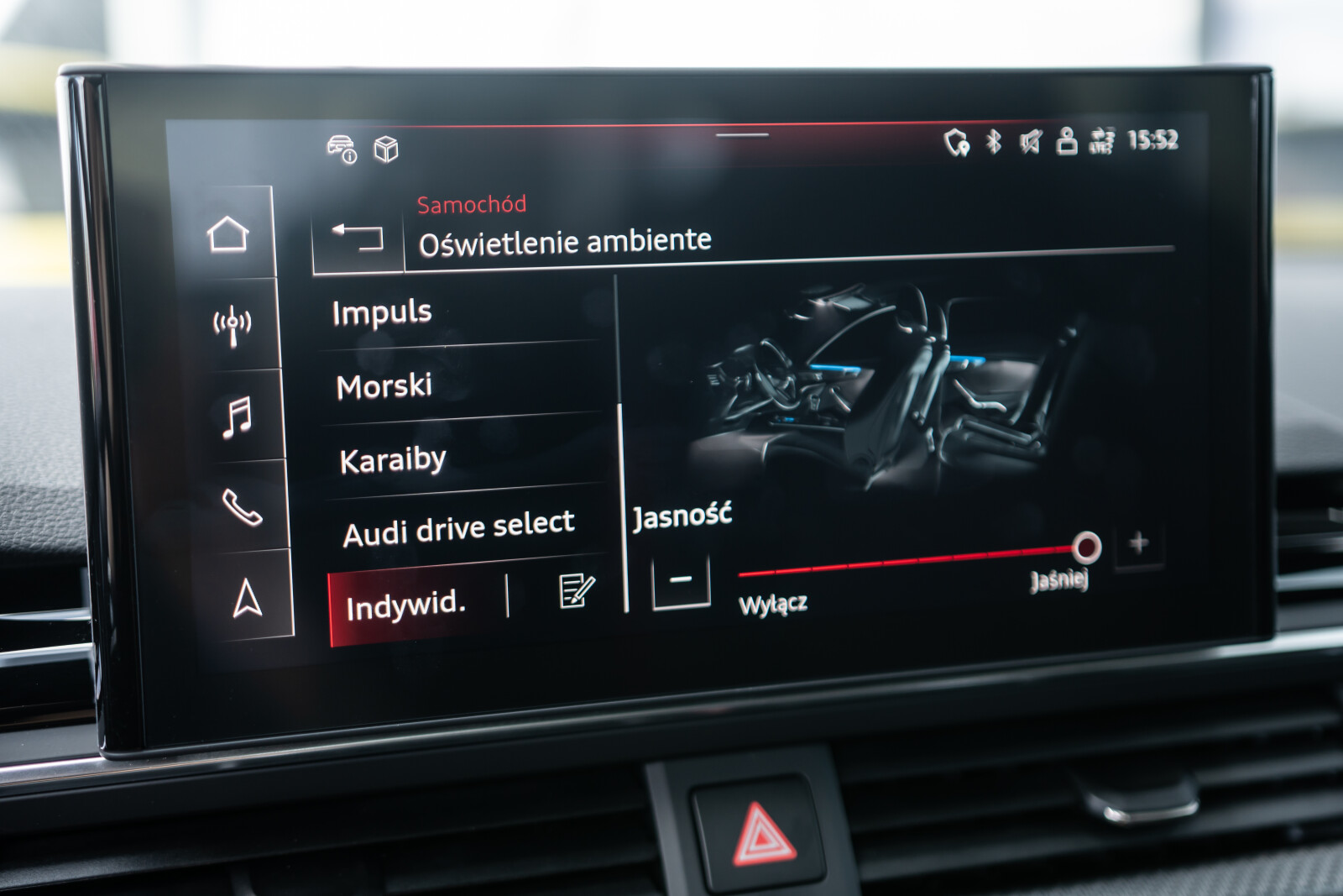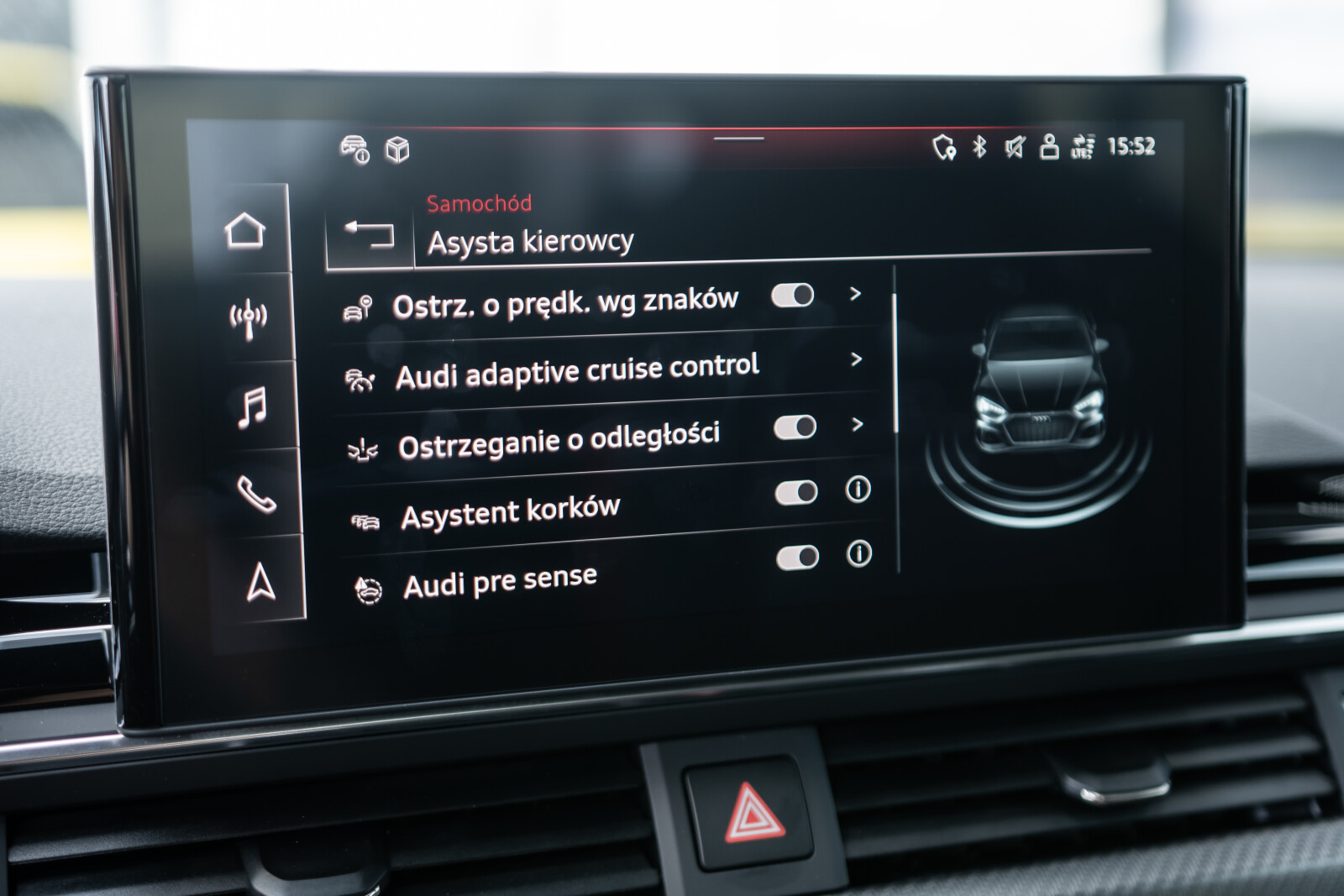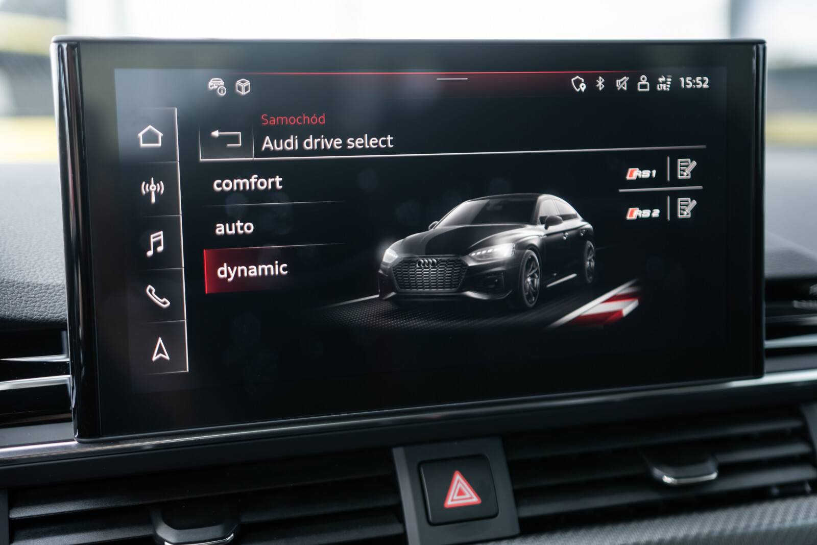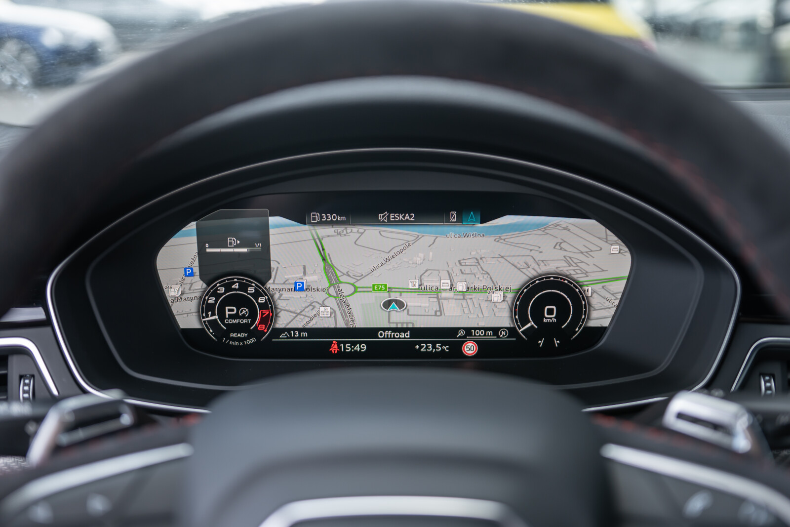 – Audi virtual cockpit plus z dodatkowym widokiem typowym dla modeli RS