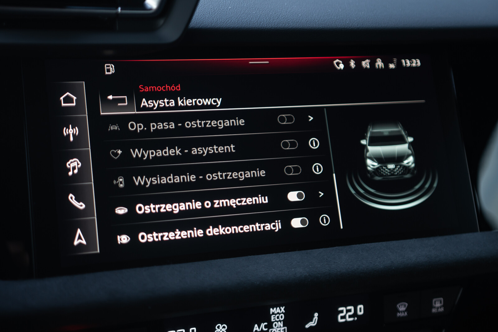 • Funkcja ostrzegającą przy zmianie pasa ruchu wraz z ostrzeżeniem przy wysiadaniu i asystentem ruchu przecinającego tor jazdy z tyłu