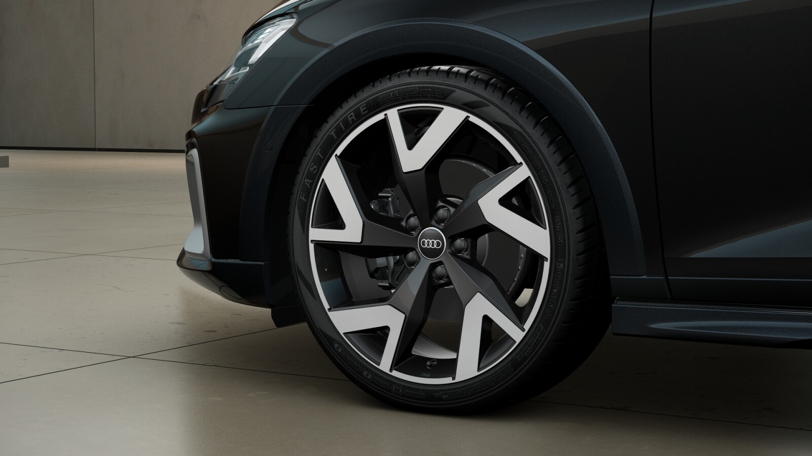 – Obręcze kół ze stopu metali lekkich Audi Sport 7,5Jx19″, 5 – ramienne, ramiona w kształcie litery V, czarne, wysoki połysk, z oponami 225/40 R19. 3-letnie ubezpieczenie opon w cenie.