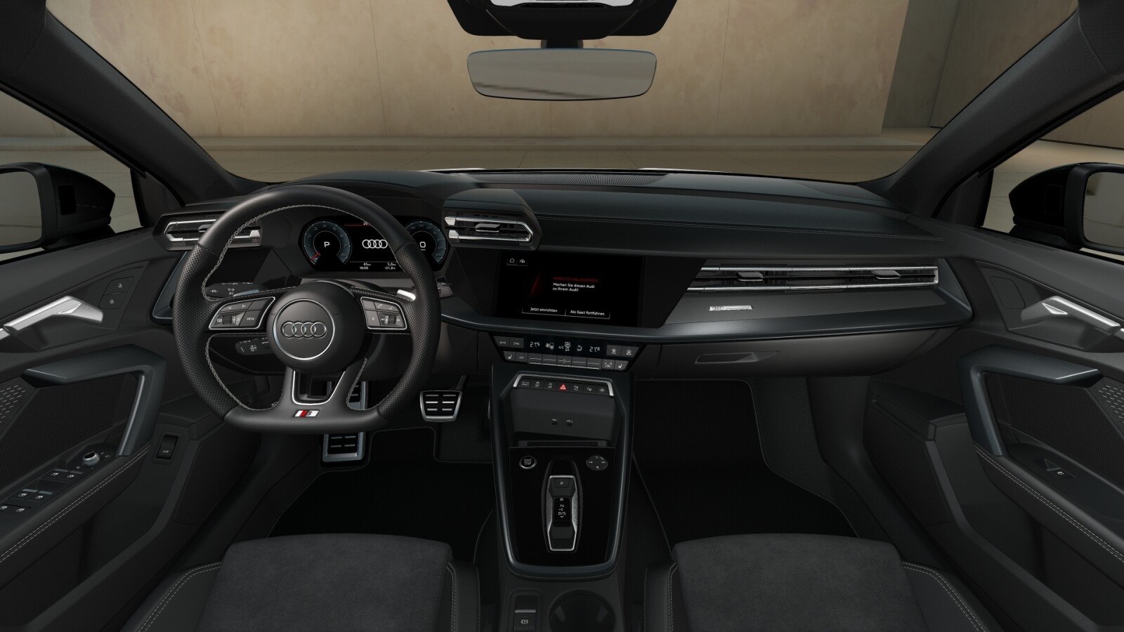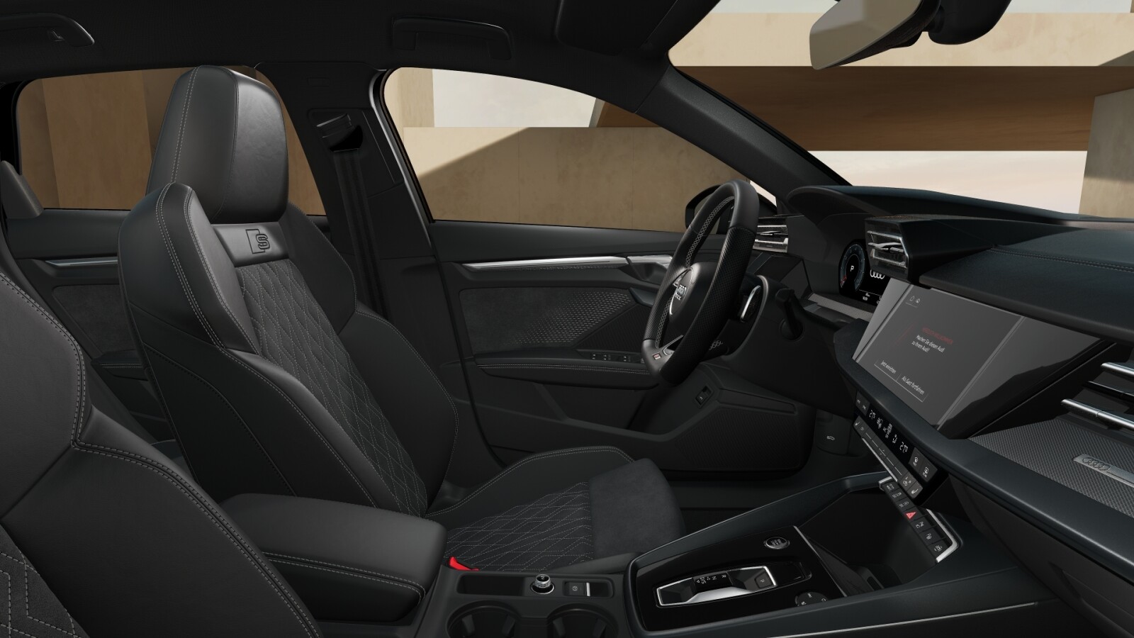 – Pakiet Interieur S z siedzeniami sportowymi obszytymi kombinacją mikrofibra Dinamica/skóra ekologiczna w kolorze czarnym