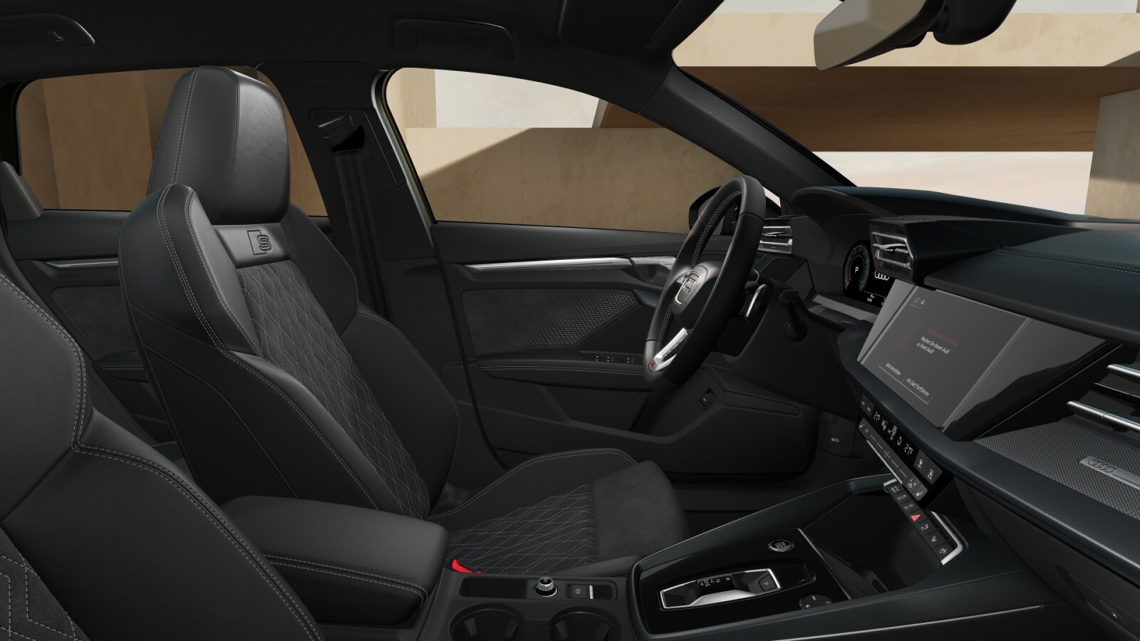 – Pakiet Interieur S z siedzeniami sportowymi obszytymi kombinacją mikrofibra Dinamica/skóra ekologiczna w kolorze czarnym