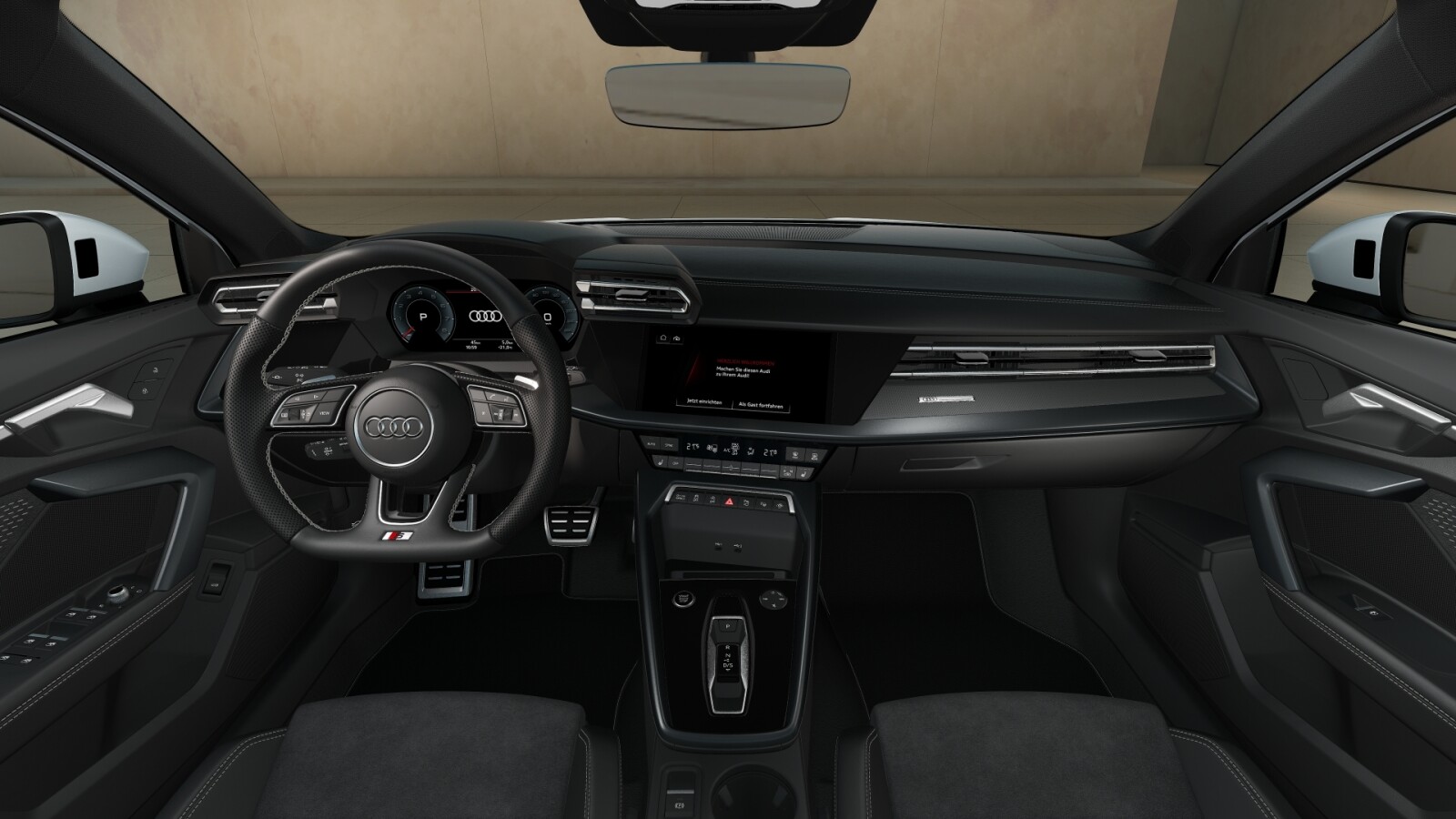 – Pakiet Interieur S z siedzeniami sportowymi obszytymi kombinacją mikrofibra Dinamica/skóra ekologiczna w kolorze czarnym