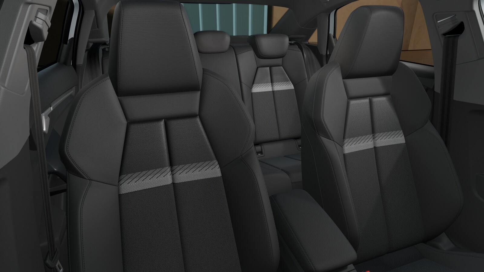 – Pakiet Interieur z siedzeniami sportowymi obszytymi tkaniną w kolorze czarnym