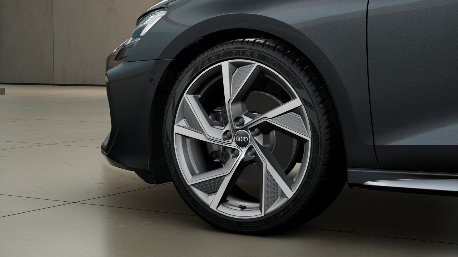 – Obręcze Audi Sport, 5-ramienne Struktur, ramiona w kształcie litery Y, tytanowo szare matowe, polerowane, 8,0 J x 19