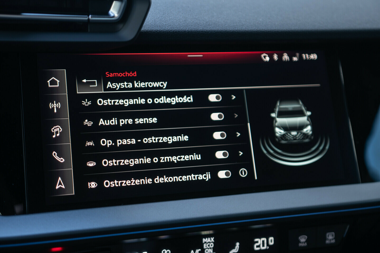 • funkcja ostrzegająca przed opuszczeniem pasa ruchu