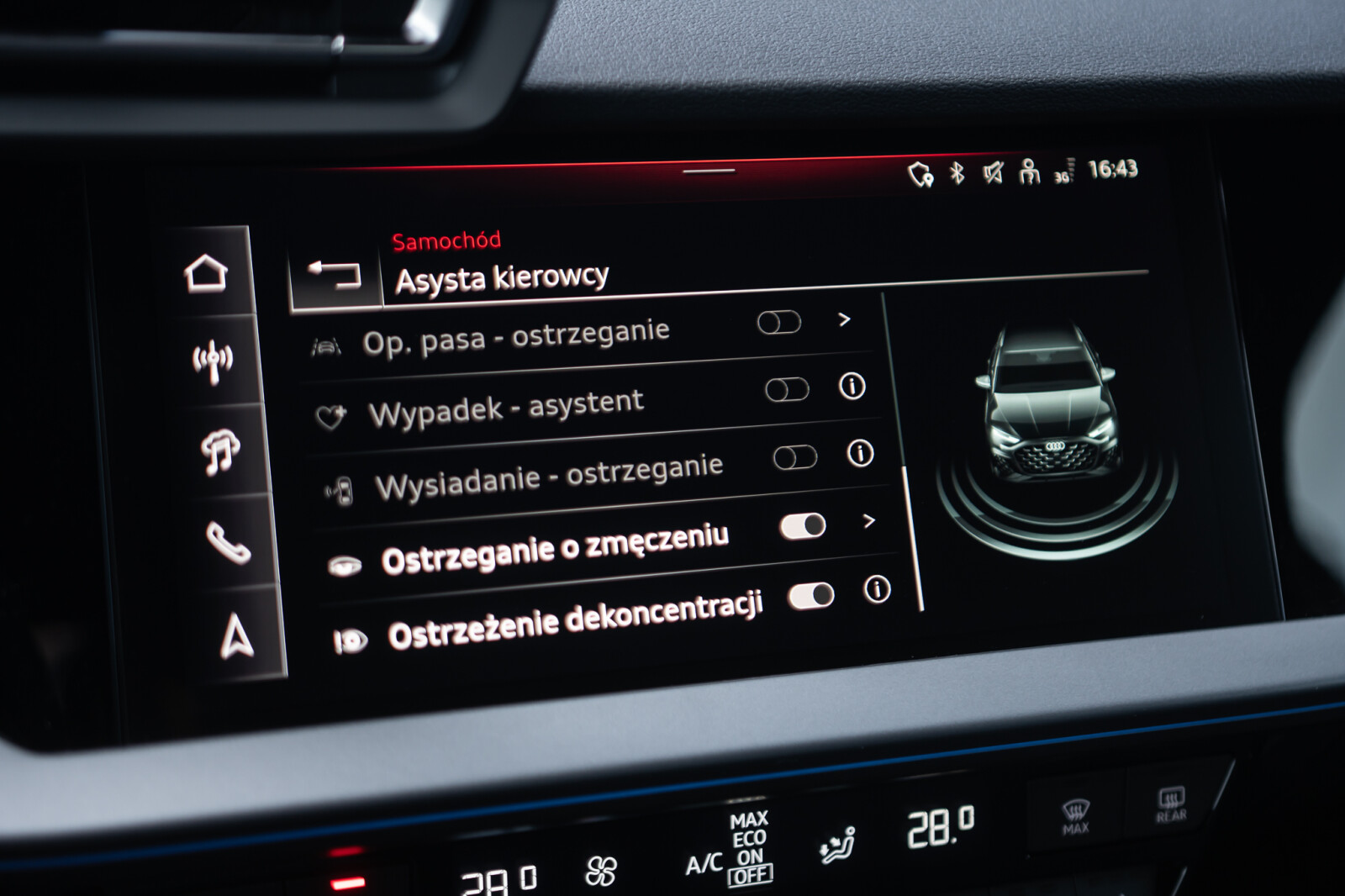 • Funkcja ostrzegającą przy zmianie pasa ruchu wraz z ostrzeżeniem przy wysiadaniu i asystentem ruchu przecinającego tor jazdy z tyłu