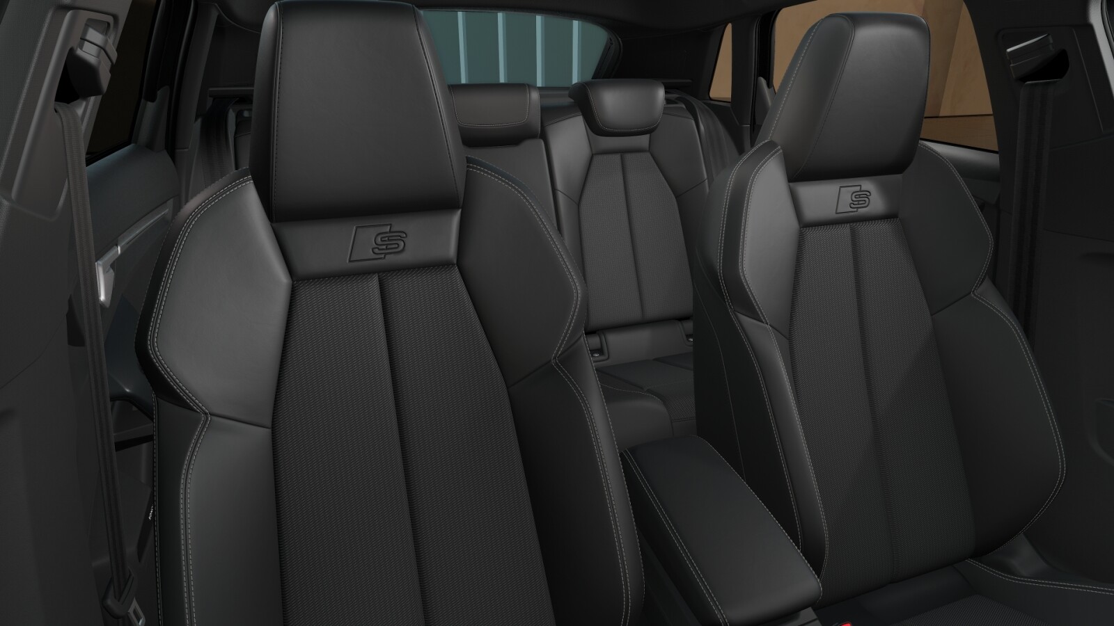 – Pakiet Interieur S z siedzeniami sportowymi obszytymi kombinacją tkanina/skóra ekologiczna w kolorze czarnym Interieur S