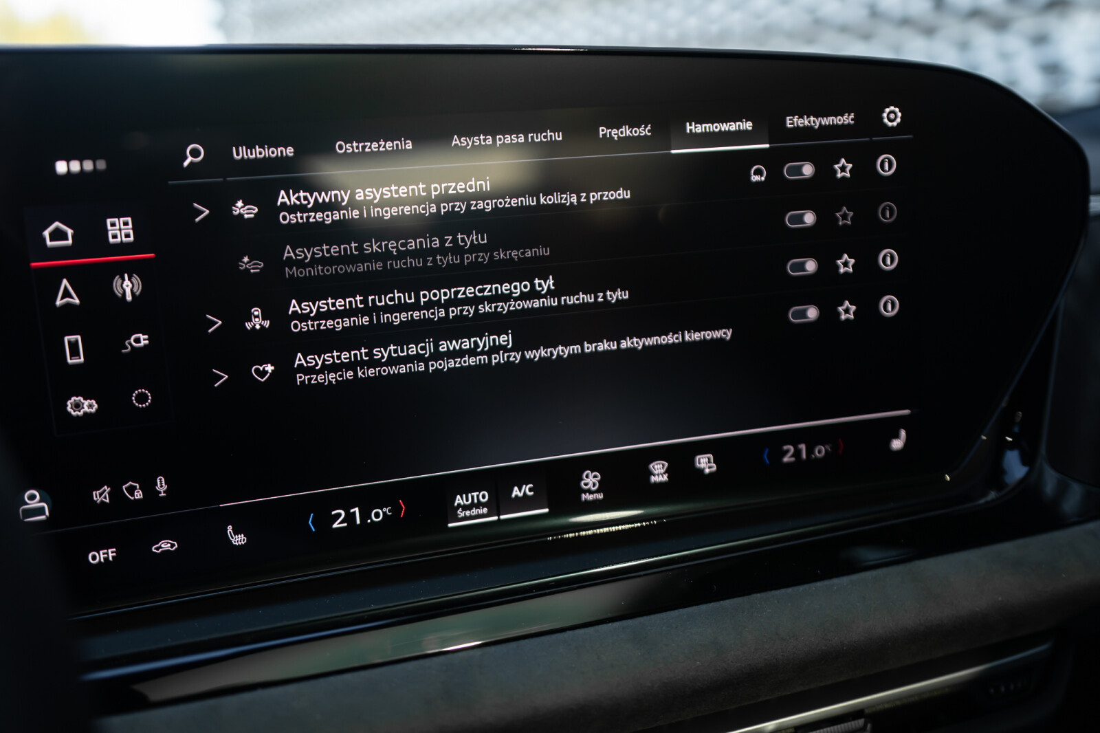 – System ostrzegający przy zmianie pasa ruchu i wysiadaniu, asystent ruchu poprzecznego z tyłu i tylny asystent skrętu