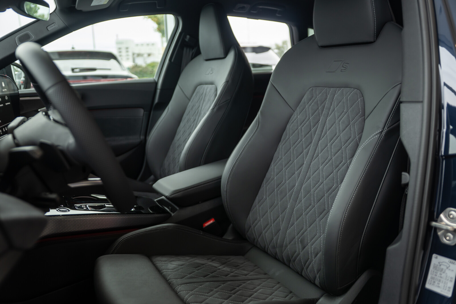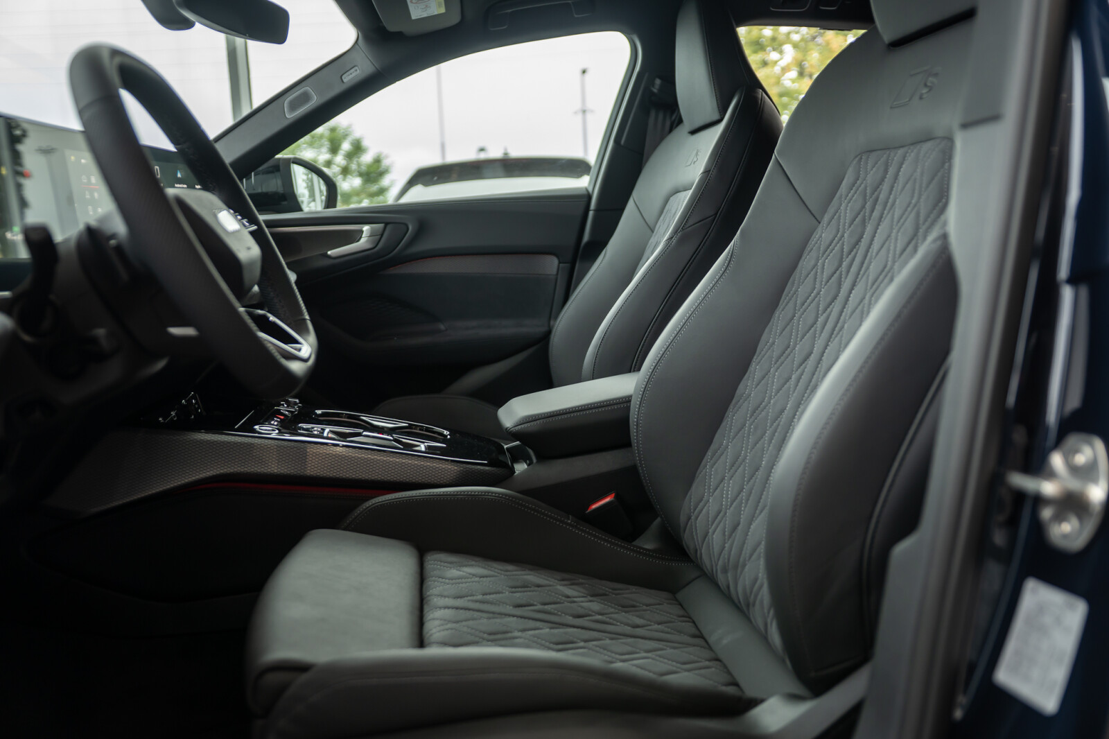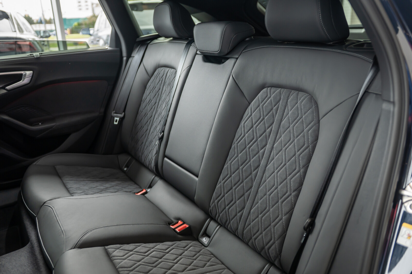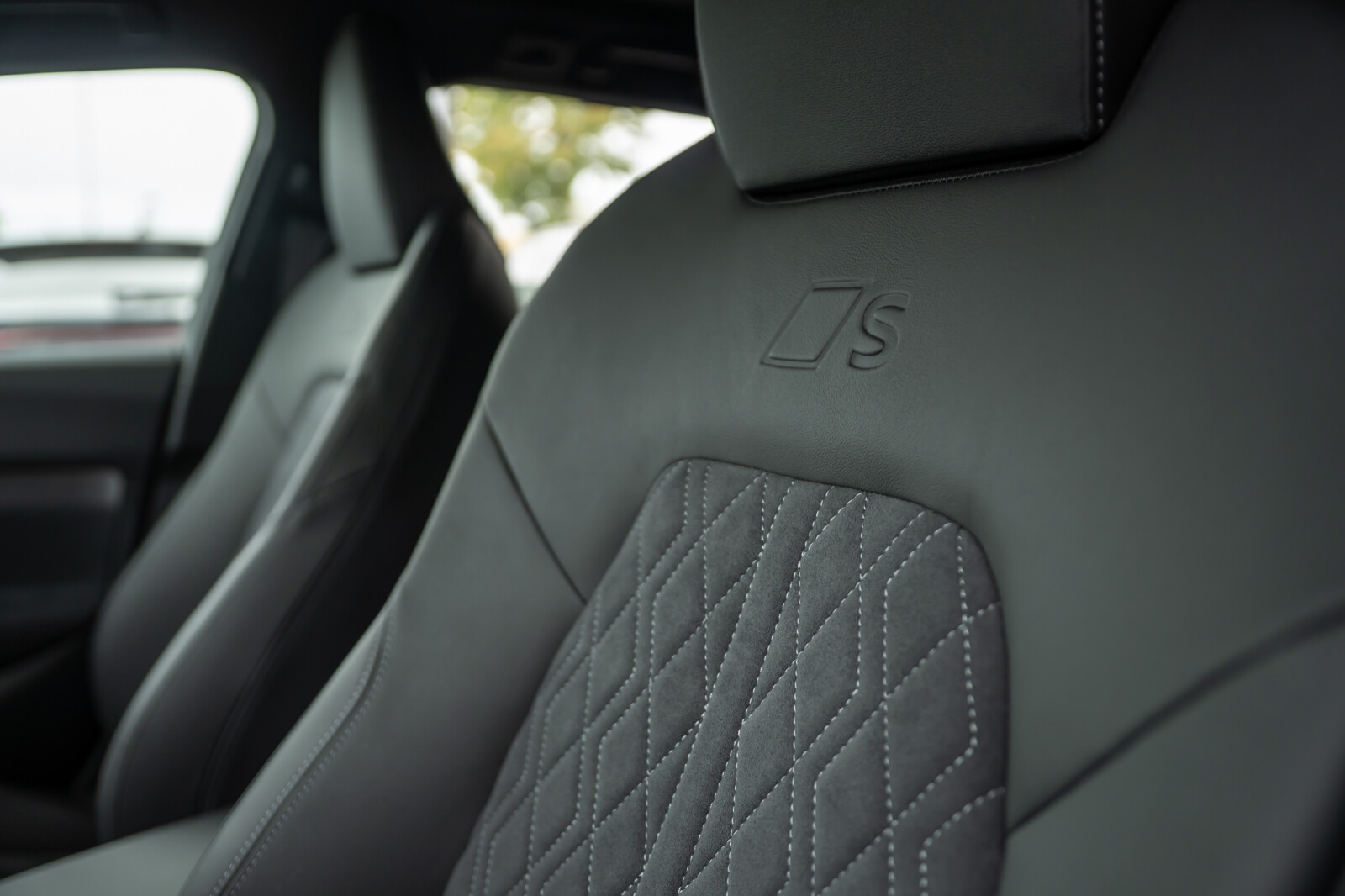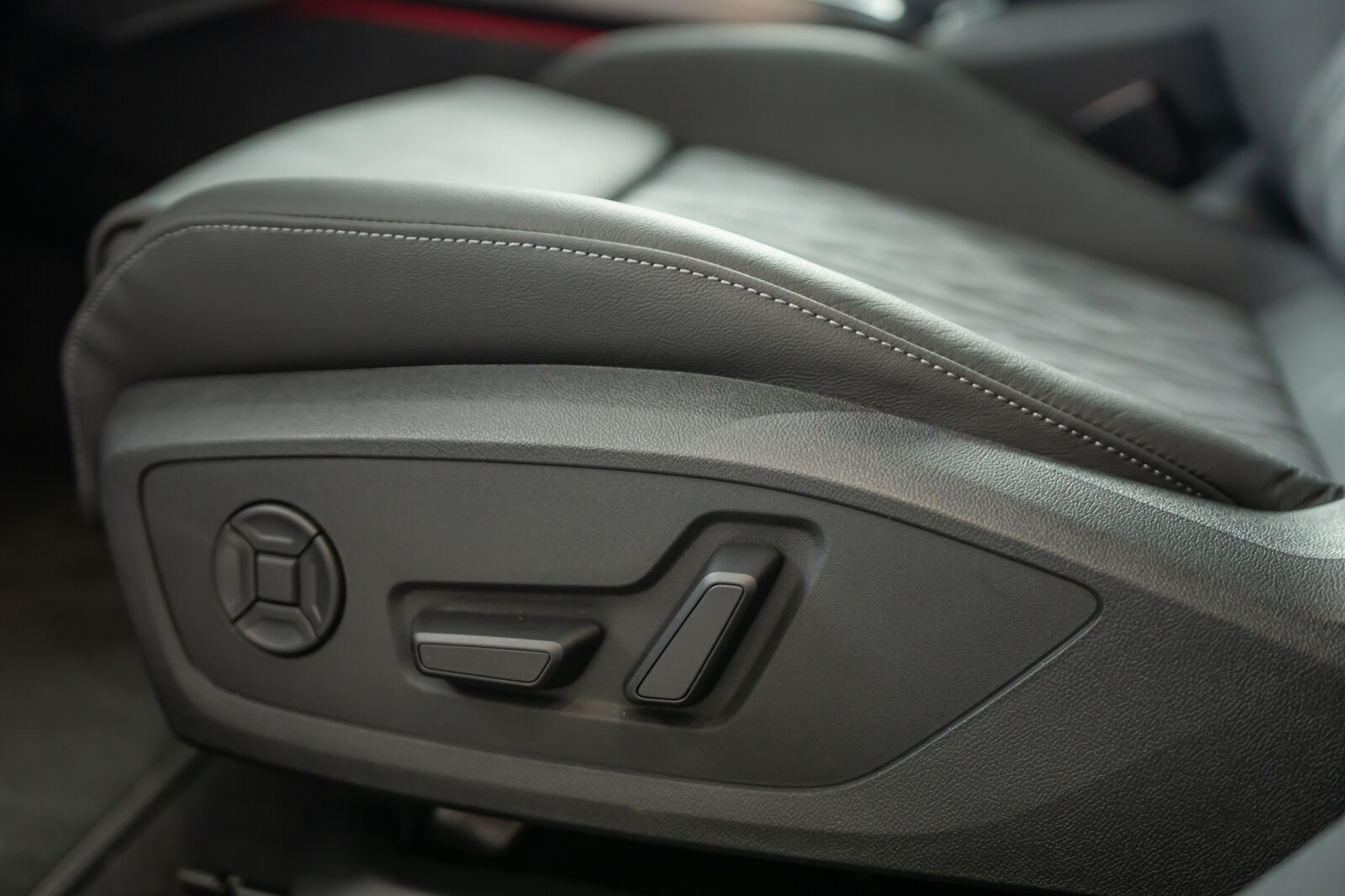 • Wnętrze z siedzeniami sportowymi, kombinacja mikrofibra Dinamica/skóra w kolorze czarnym, czerwony szew Audi Sport GmbH