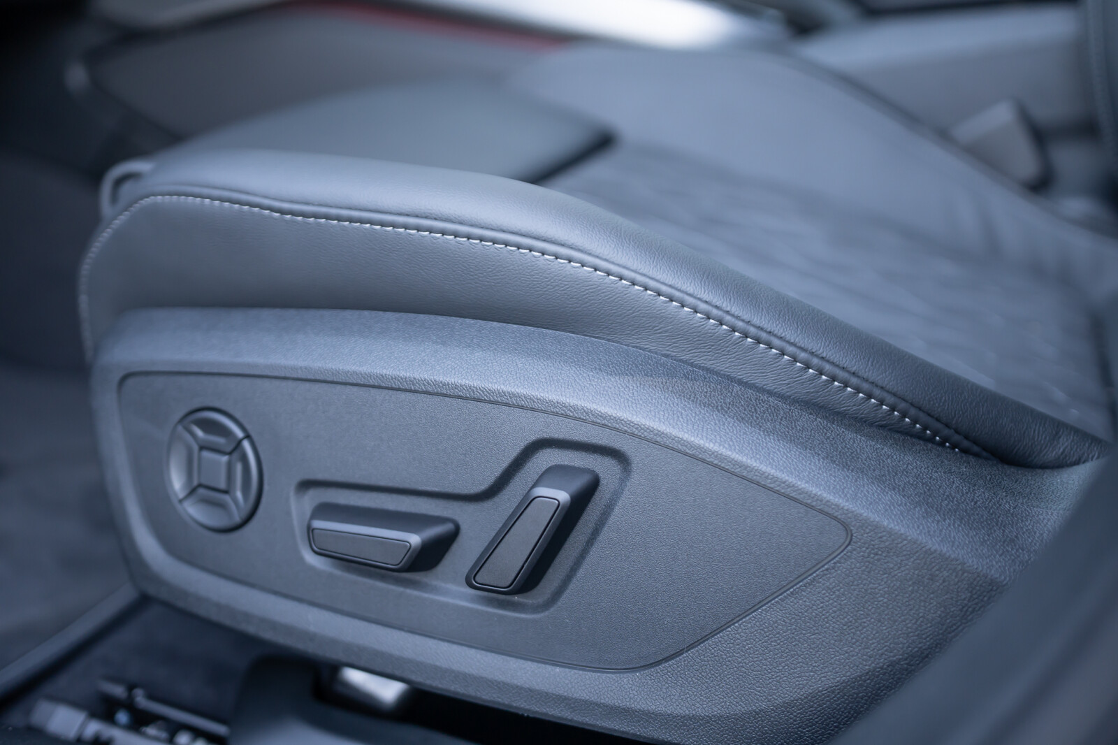 • Kierownica sportowa, 3-ramienna, spłaszczona u dołu i na górze, wielofunkcyjna, z przełącznikami kołyskowymi, obszyta skórą