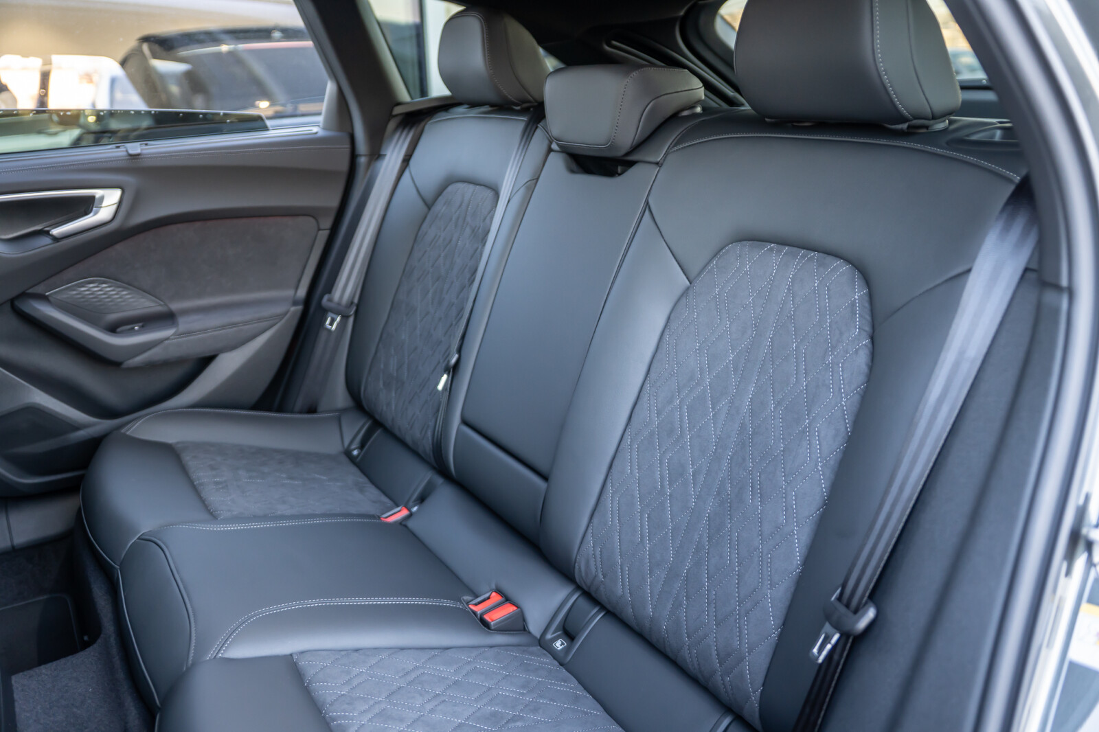 • Wnętrze z siedzeniami sportowymi, kombinacja mikrofibra Dinamica/skóra w kolorze czarnym, czerwony szew Audi Sport GmbH