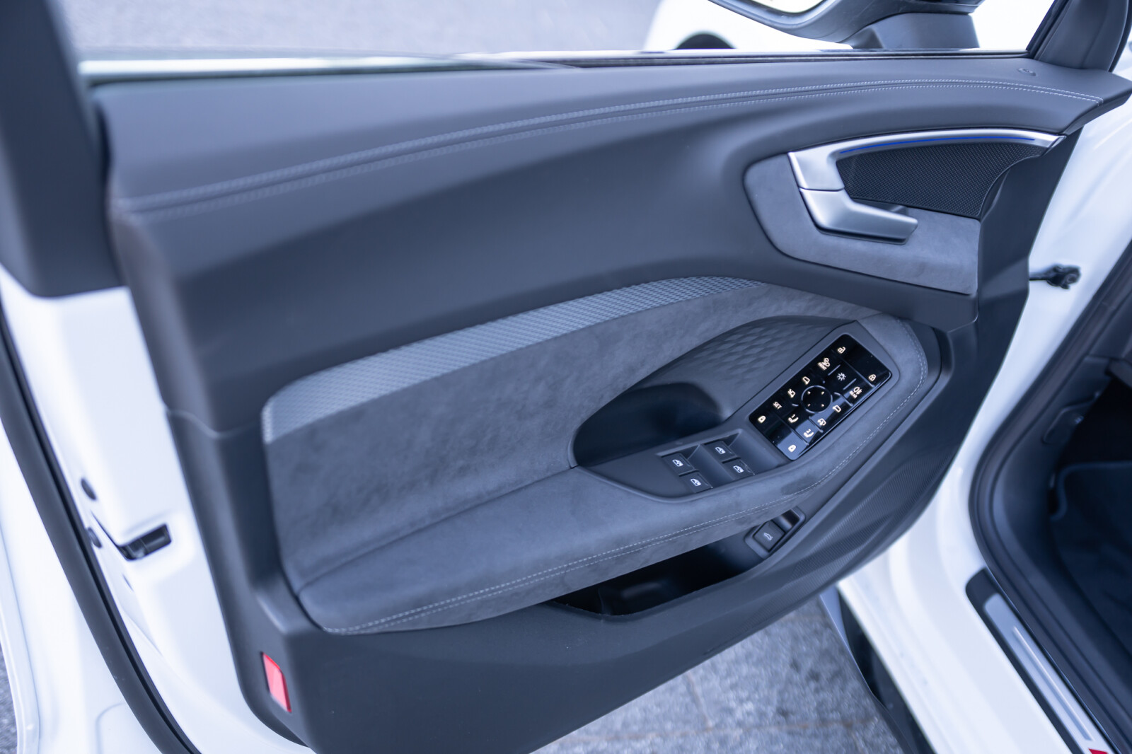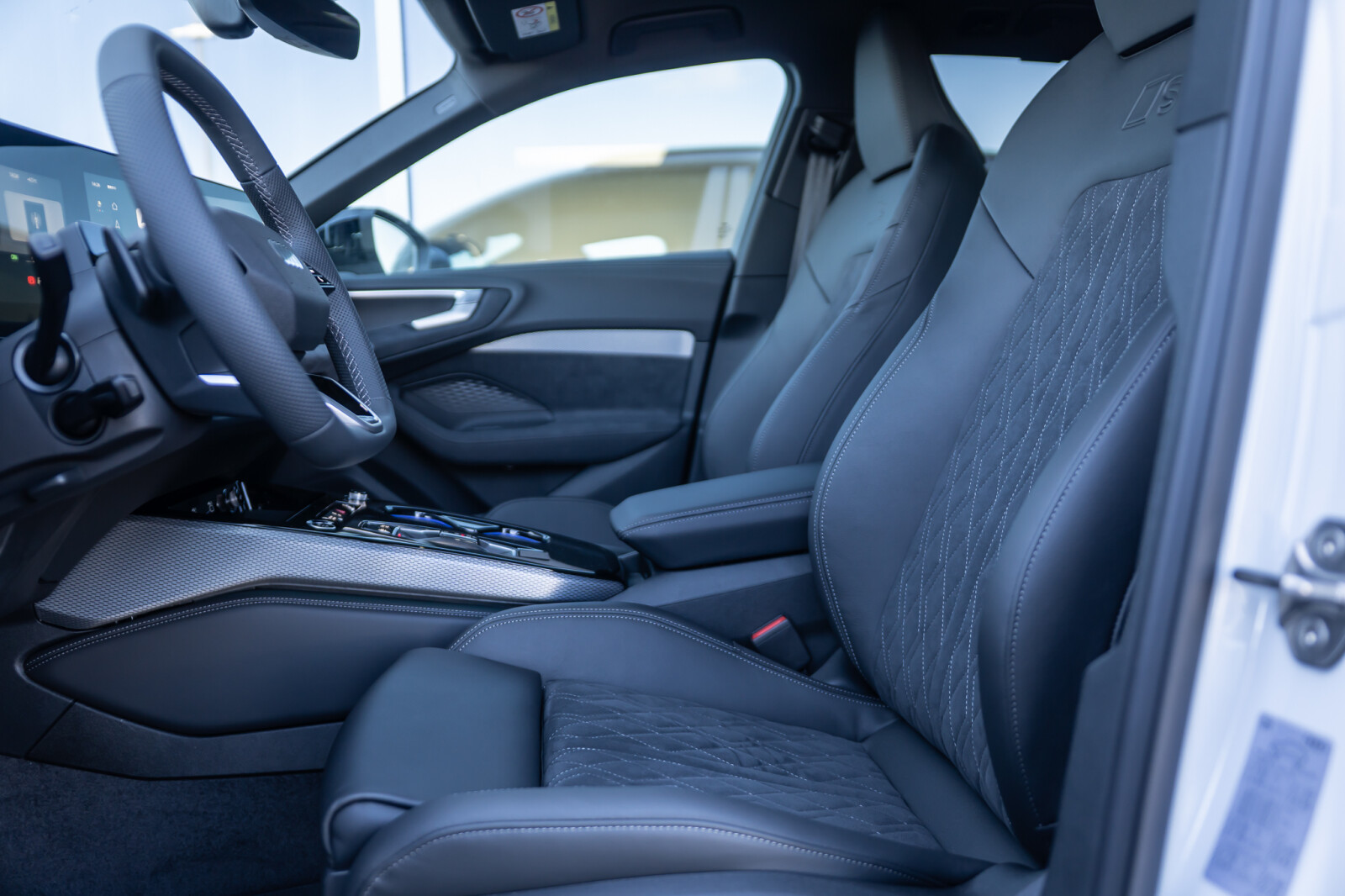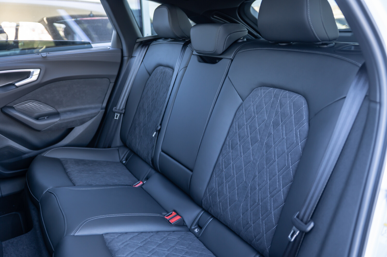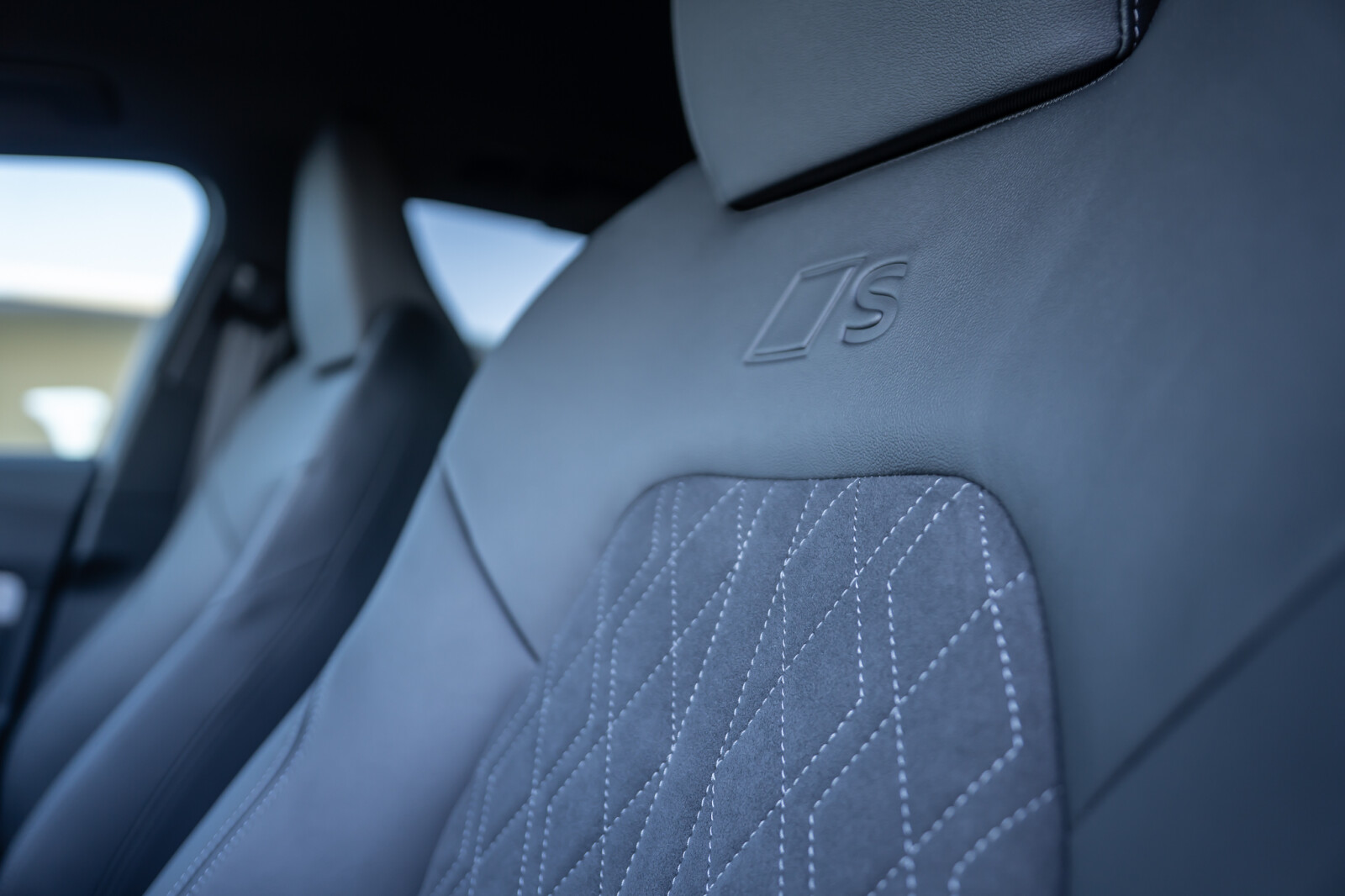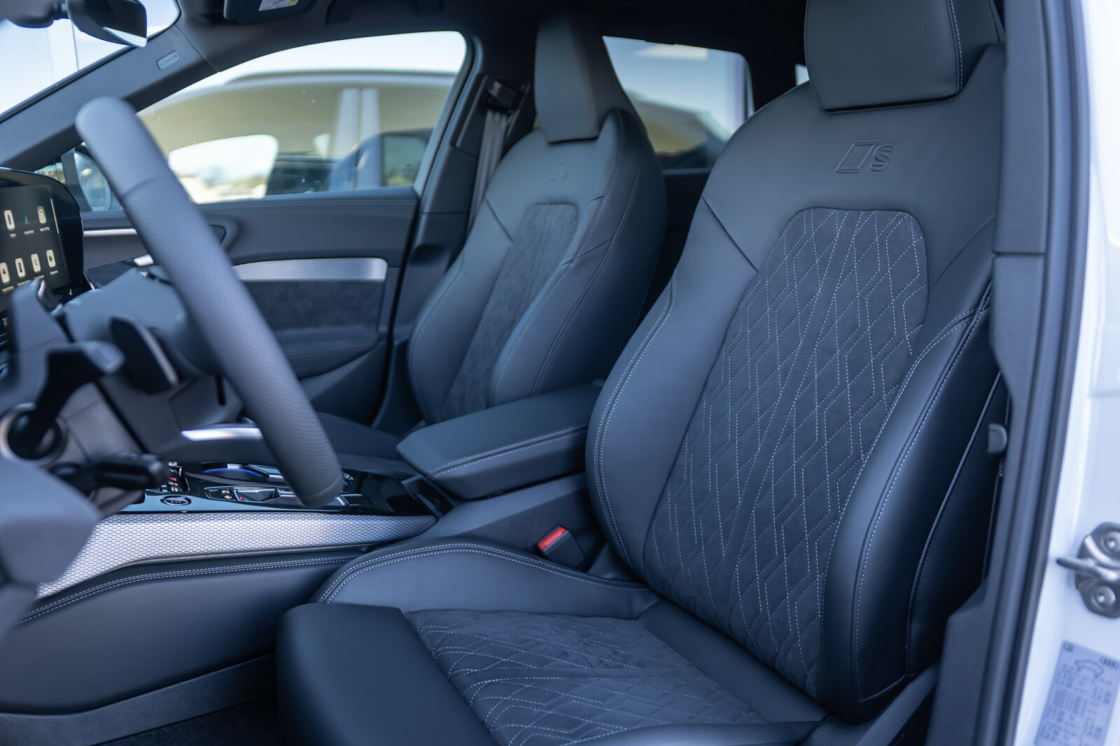 • Wnętrze z siedzeniami sportowymi, kombinacja mikrofibra Dinamica/skóra w kolorze czarnym, czerwony szew Audi Sport GmbH