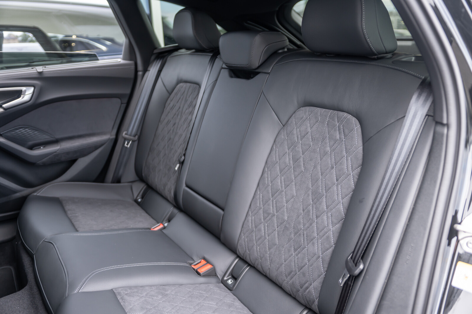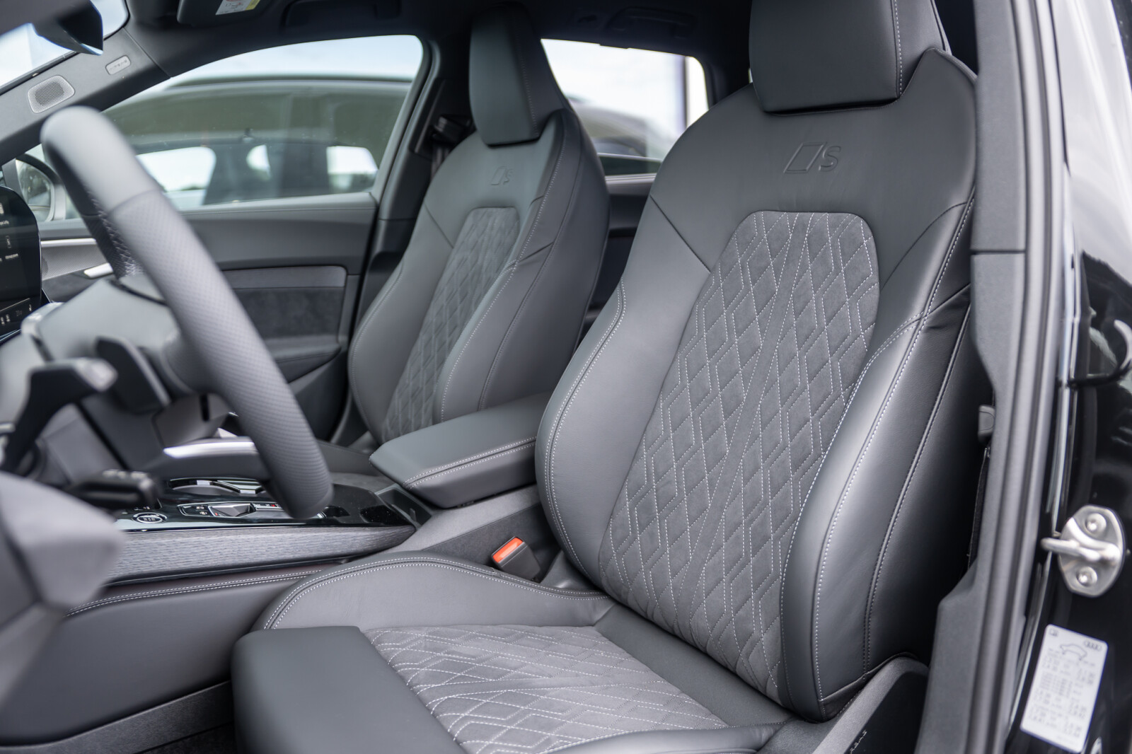 • Wnętrze z siedzeniami sportowymi, kombinacja mikrofibra Dinamica/skóra w kolorze czarnym, czerwony szew Audi Sport GmbH