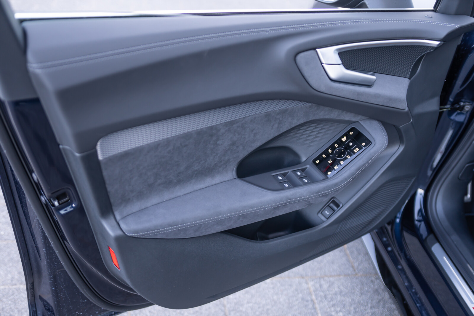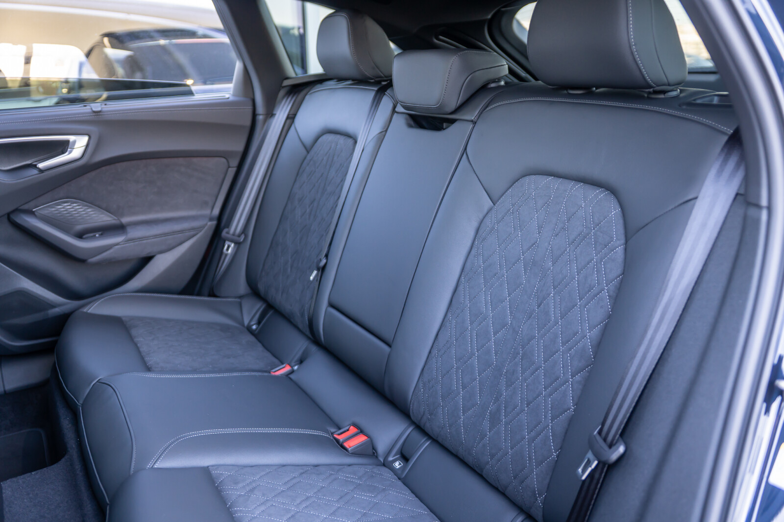 • Wnętrze z siedzeniami sportowymi, kombinacja mikrofibra Dinamica/skóra w kolorze czarnym, czerwony szew Audi Sport GmbH